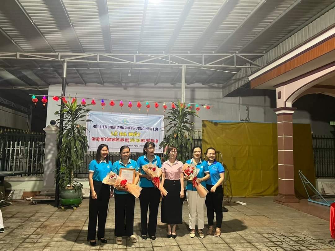 Thực hiện Đề án Đoàn kết tập hợp thanh niên công nhân giai đoạn 2021 – 2025, tối 12/05, Hội LHPN phường Hòa Lợi tổ chức Lễ ra mắt Chi hội nữ TNCN nhà trọ Kiều Thu tại khu phố An Lợi, phường Hoà Lợi, thành phố Bến Cát.