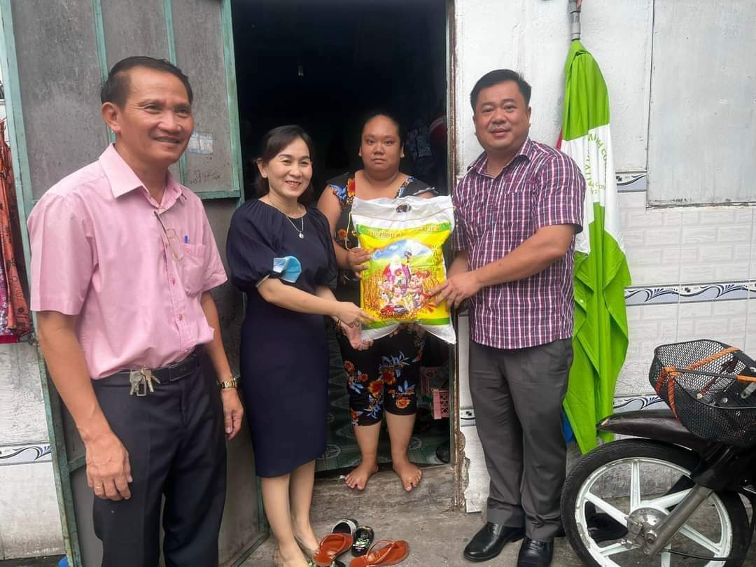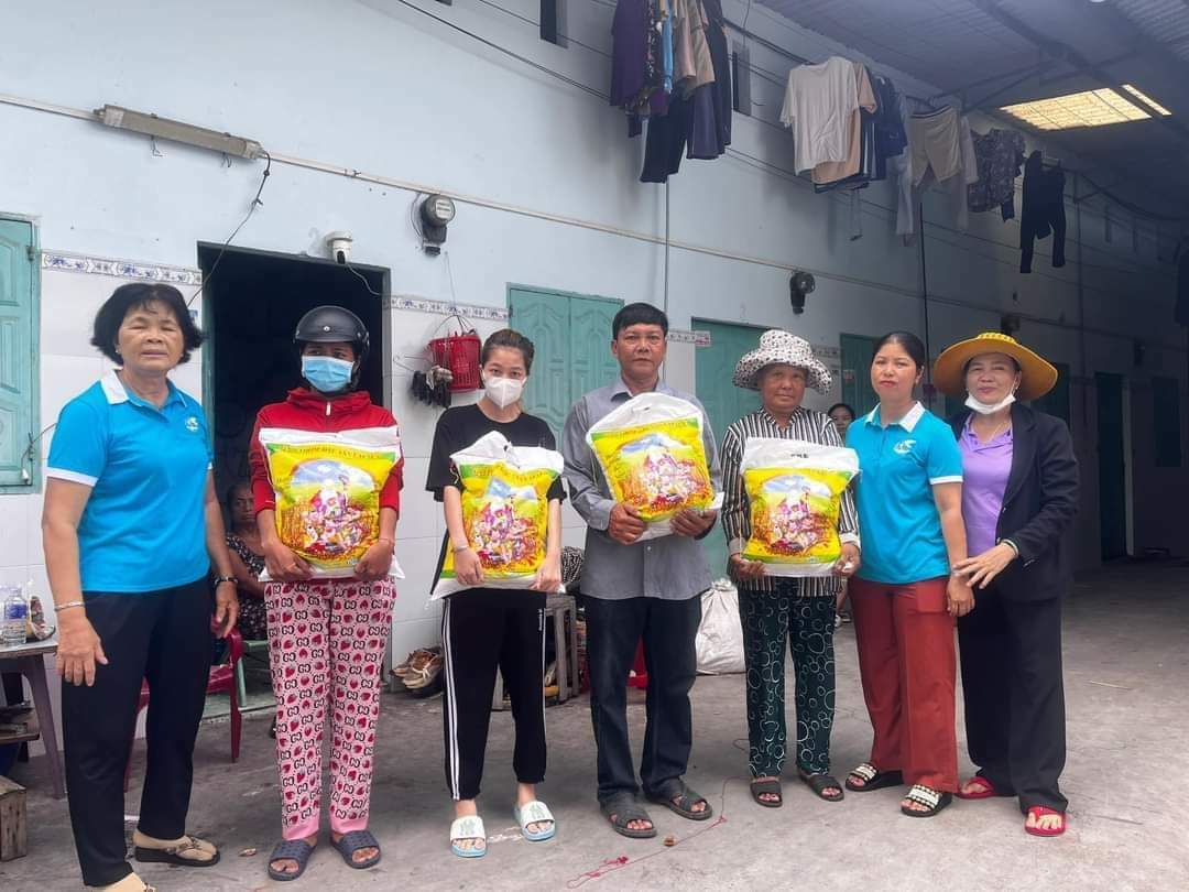 Tại buổi đến thăm, đoàn đã ân cần động viên và chia sẻ khó khăn với các hộ công nhân có hoàn cảnh đặc biệc đồng thời tặng mỗi hộ một phần quà là 10kg gạo.