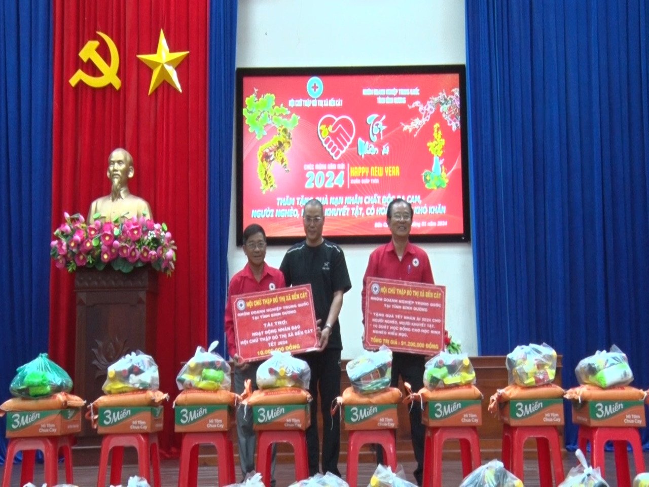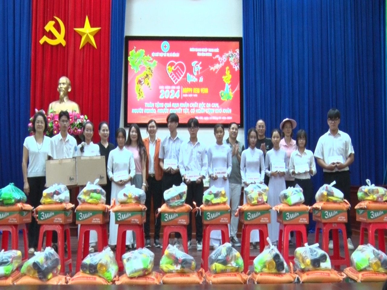 Dịp này, Hội chữ thập đỏ thị xã và nhà hảo tâm đã trao tặng 100 phần quà và 10 suất học bổng, thiết bị máy tính với tổng trị giá trên 91 triệu đồng cho học sinh nghèo, nạn nhân chất độc da cam, người nghèo, người khuyết tật, người có hoàn cảnh khó khăn vui xuân đón tết cổ truyền của dân tộc.