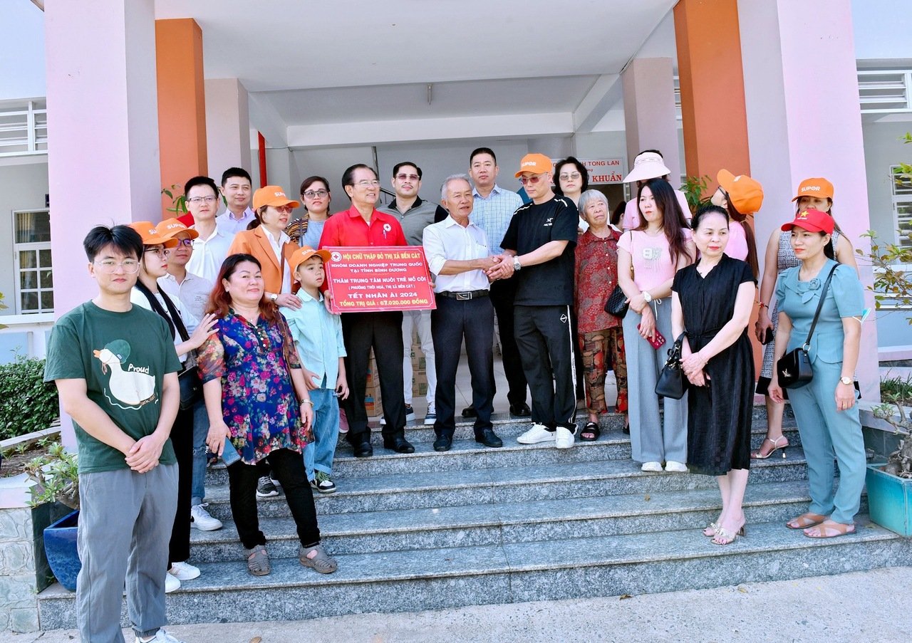 Thiết thực chung tay chăm lo cho người già neo đơn, trẻ em mồ côi, nạn nhân chất độc da cam, người có hoàn cảnh khó khăn, ngày 13/01, Hội Chữ Thập đỏ thị xã Bến Cát làm cầu nối cùng các nhà hảo tâm tổ chức đến thăm, tặng quà “Tết nhân ái” Xuân Giáp Thìn năm 2024 tại Trung tâm bảo trợ và nuôi dưỡng trẻ mồ côi tại phường Thới Hòa và Trung tâm Bảo trợ xã hội tỉnh Bình Dương tại phường An Sơn, thành phố Thuận An.