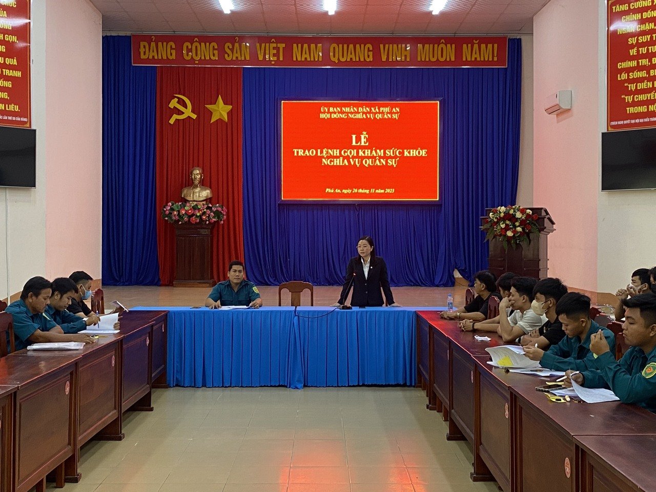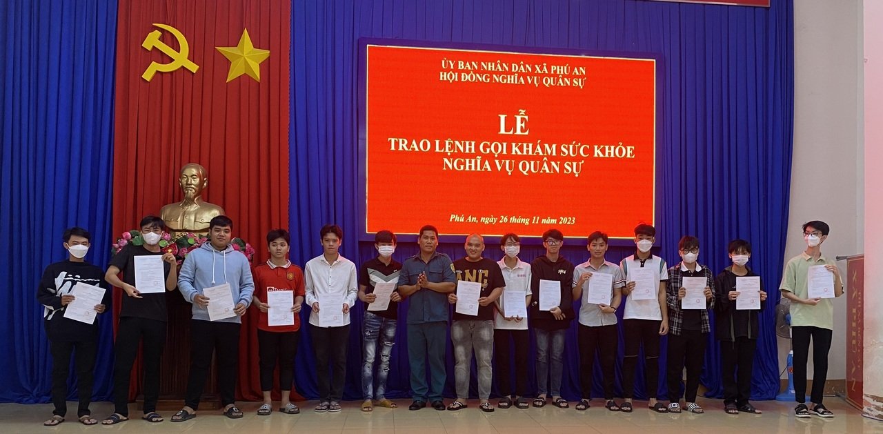 Hội đồng nghĩa vụ Quân sự xã Phú An trao lệnh khám sức khỏe nghĩa vụ quân sự năm 2024