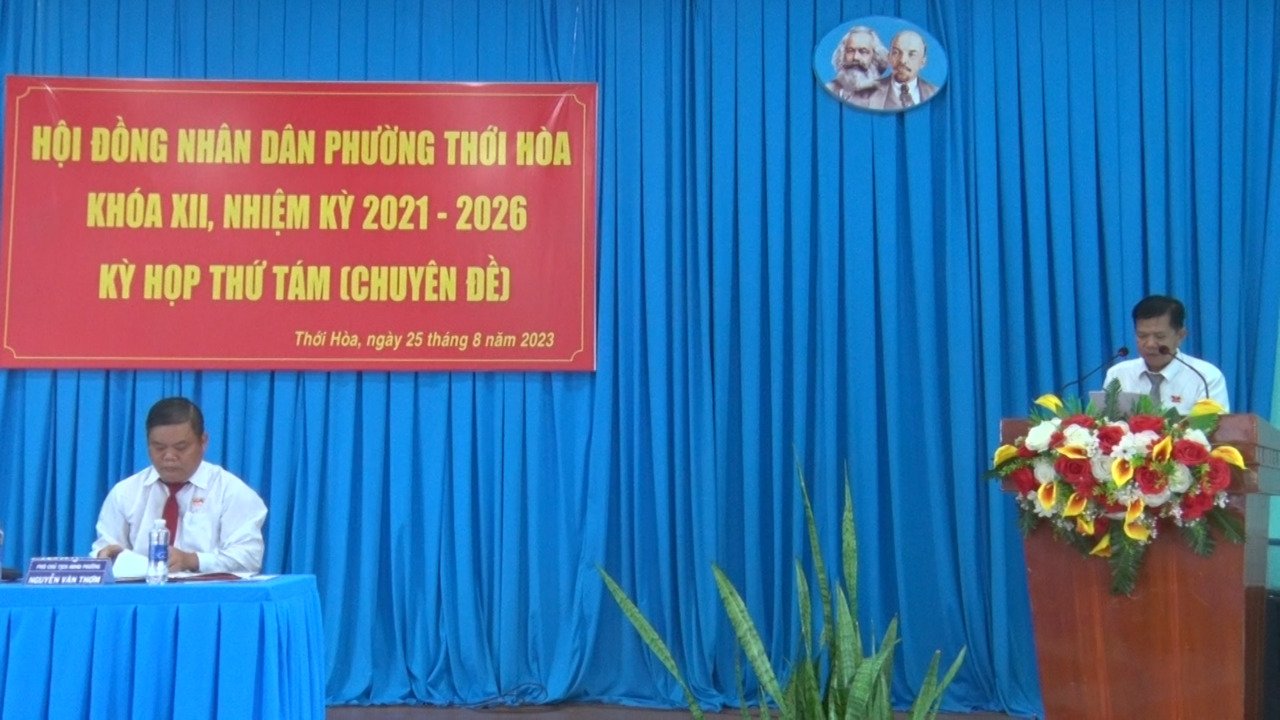 Tại kỳ họp, HĐND phường Thới Hòa đã công bố Tờ trình về việc miễn nhiệm chức danh Chủ tịch UBND phường đối với ông Phan Thanh Thảo do chuyển công tác khác.