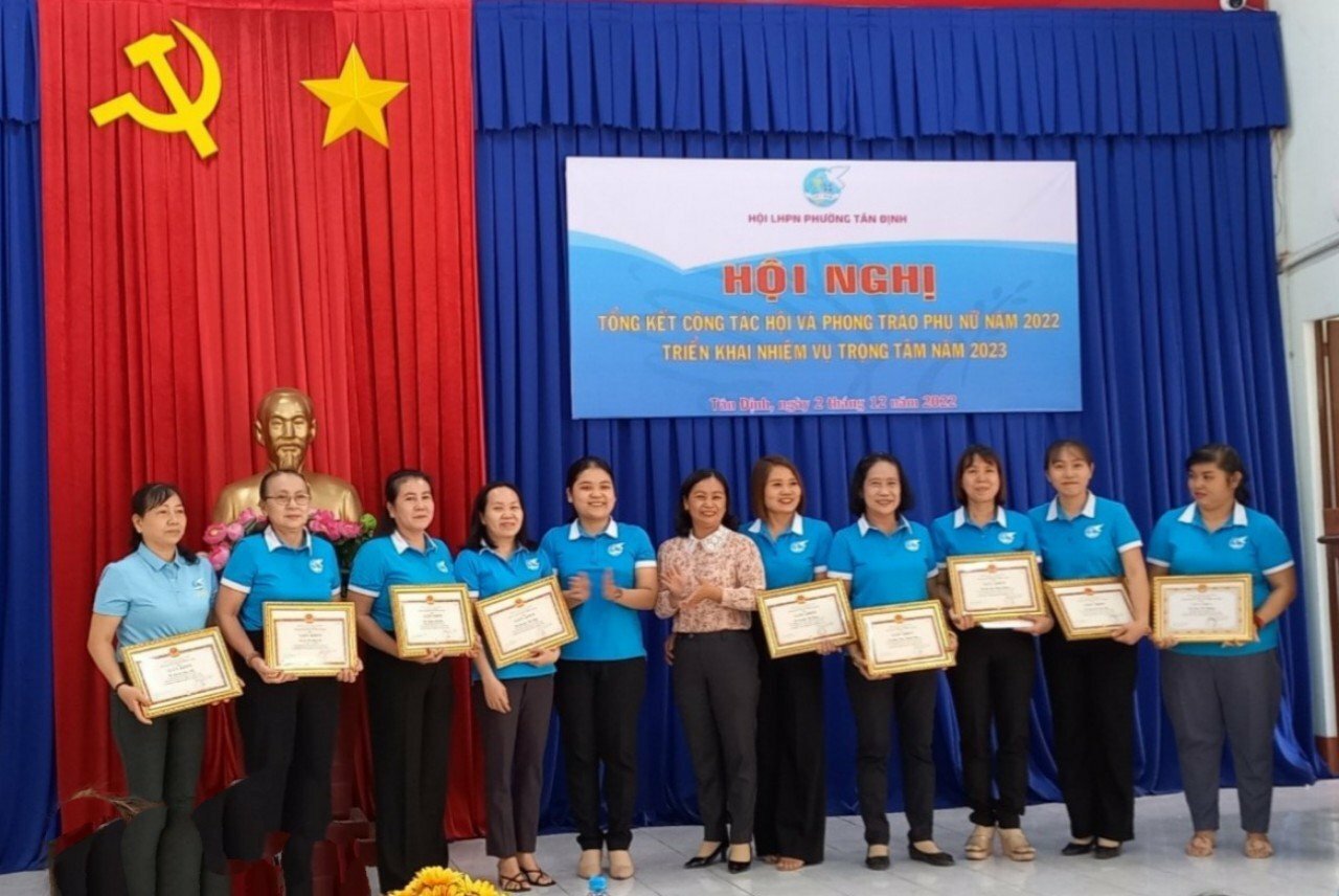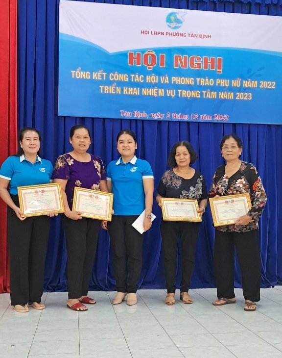 Dịp này, UBND phường Tân Định và Hội LHPN phường đã trao tặng giấy khen cho 04 tập thể và 33 cá nhân có thành tích xuất sắc trong công tác Hội và phong trào phụ nữ năm 2022.