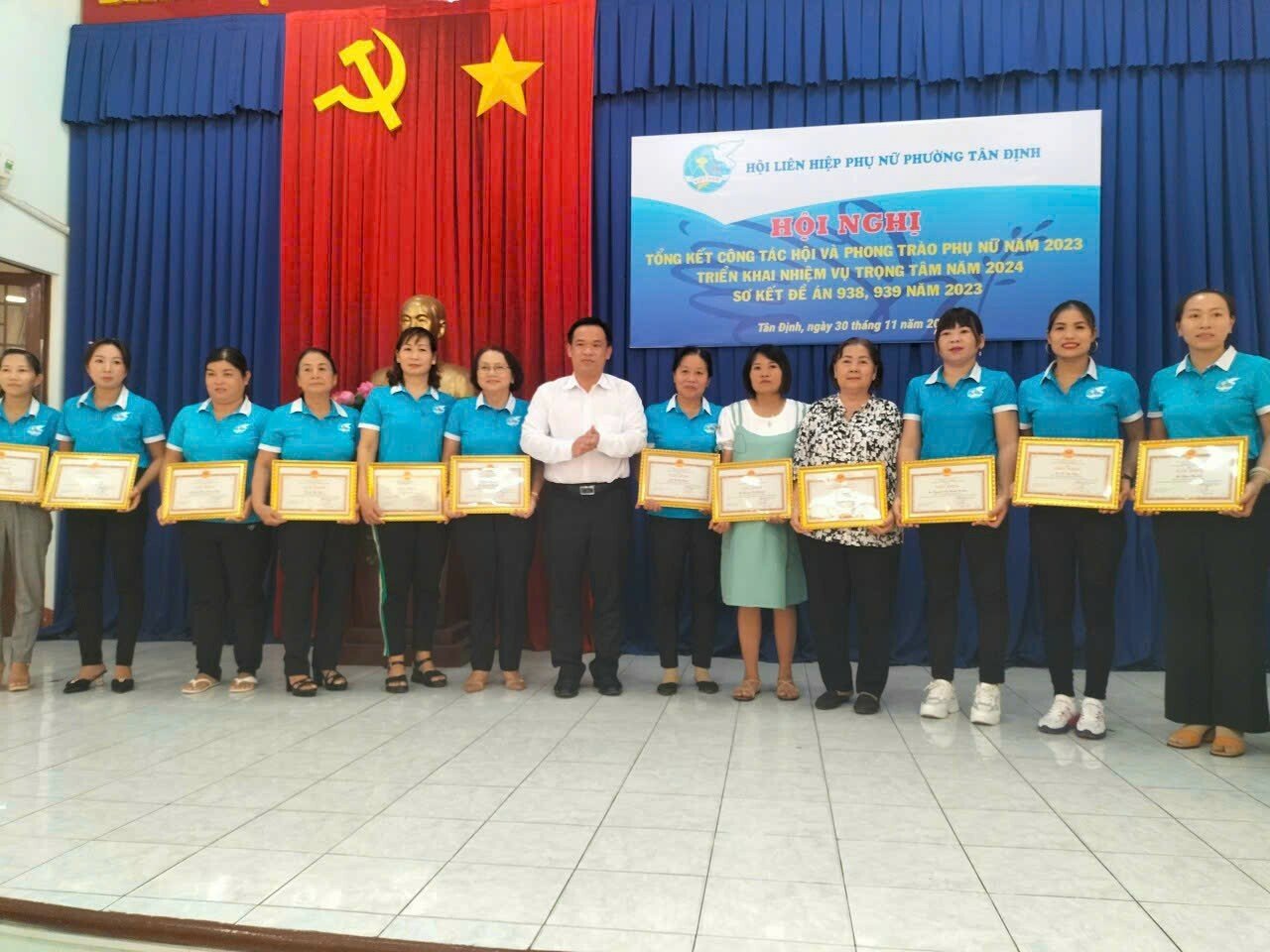 Dịp này, UBND phường Tân Định đã tặng giấy khen cho 3 tập thể, 13 cá nhân; Hội LHPN phường biểu dương 22 cá nhân có thành tích xuất sắc trong công tác Hội và phong trào phụ nữ năm 2023.