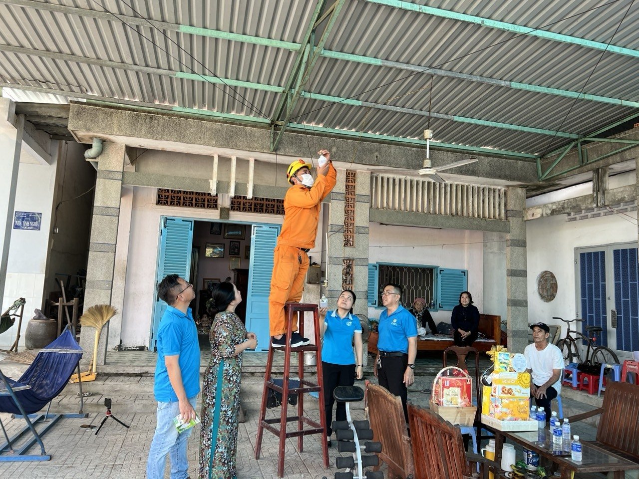 Dịp này, Công đoàn bộ phận Điện lực cũng sửa chữa, thay bóng đèn chiếu sáng cho các hộ gia đình.