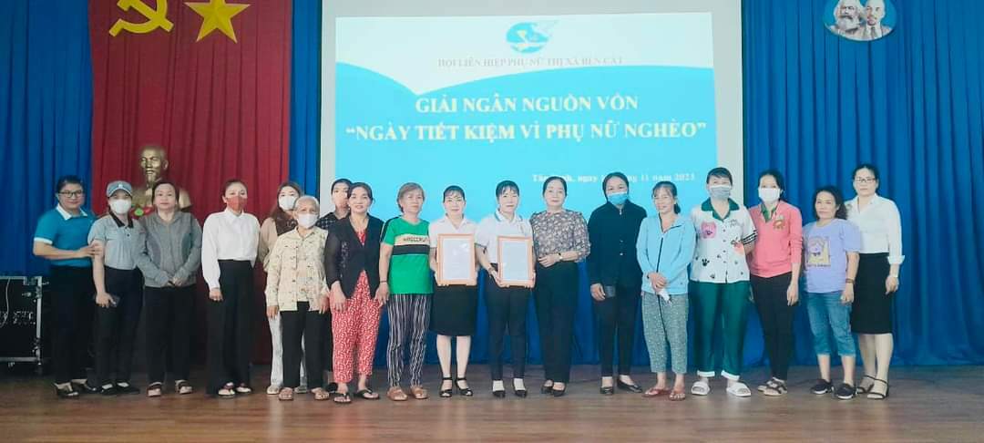 Nhằm hỗ trợ hội viên phụ nữ nghèo, khó khăn có thêm nguồn vốn phát triển kinh tế gia đình, giảm nghèo, tạo việc làm ổn định cuộc sống, xây dựng gia đình hạnh phúc, Hội LHPN thị xã Bến Cát tổ chức giải ngân nguồn vốn “Ngày tiết kiệm vì phụ nữ nghèo” cho 30 hội viên phụ nữ khó khăn trên địa bàn phường Thới Hòa, phường Tân Định và phường Chánh Phú Hòa.