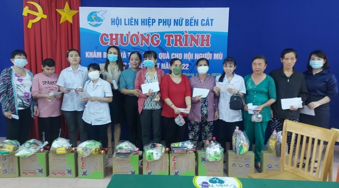 Hội LHPN thị xã Bến Cát phối hợp khám bệnh và tặng quà cho hội viên Hội Người mù thị xã