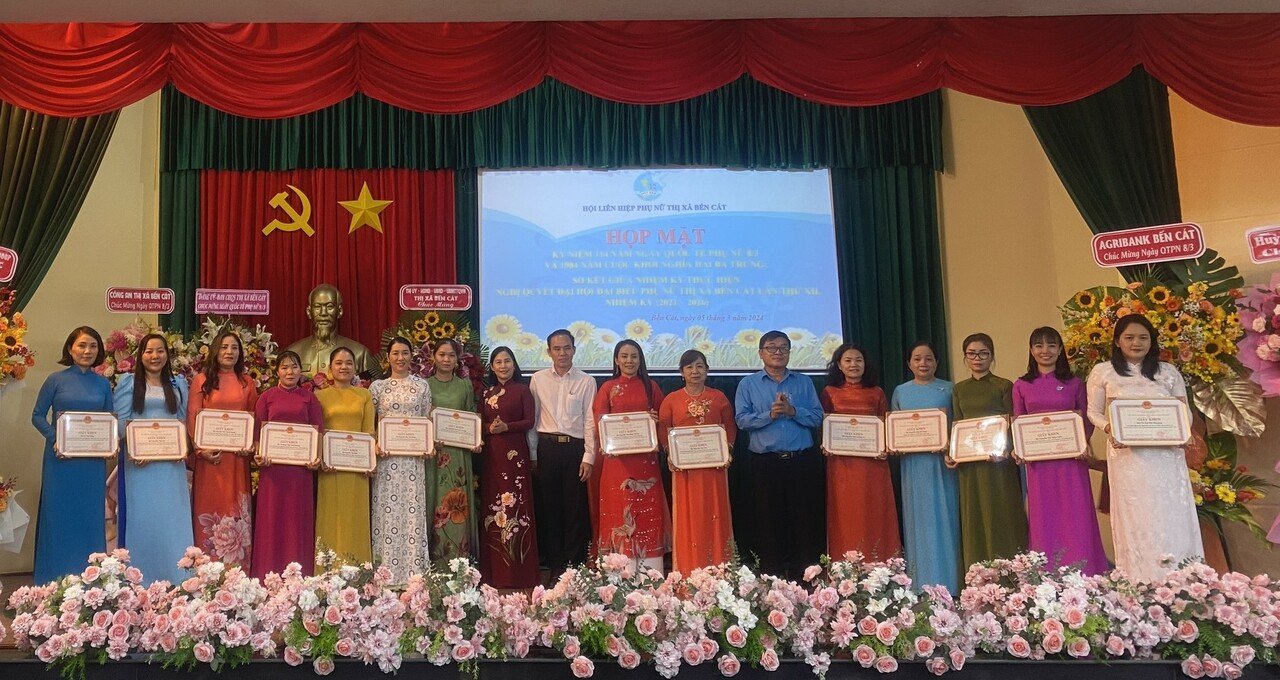 Dịp này, UBND thị xã, Hội LHPN thị xã đã khen thưởng và biểu dương các tập thể, cá nhân có thành tích xuất sắc trong công tác Hội và phong trào Phụ nữ giữa nhiệm kỳ 2021-2026 và đạt danh hiệu “Phụ nữ tiêu biểu” năm 2023.