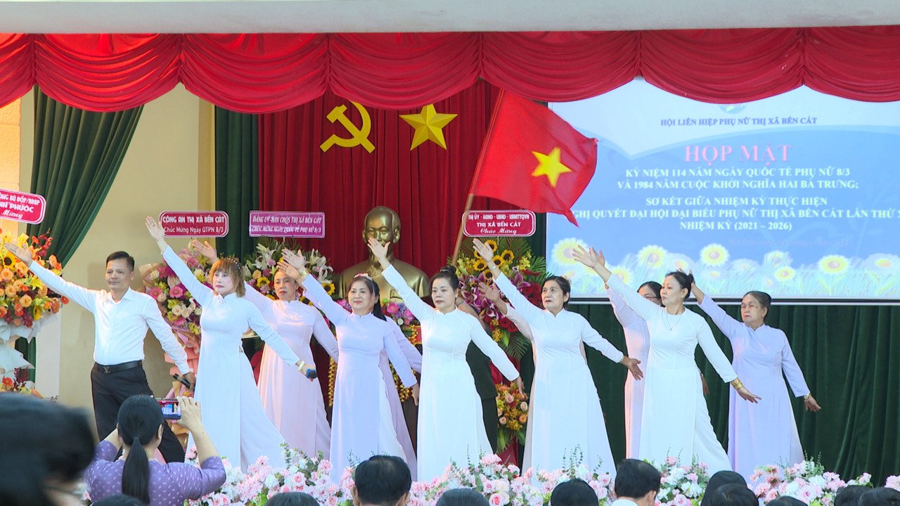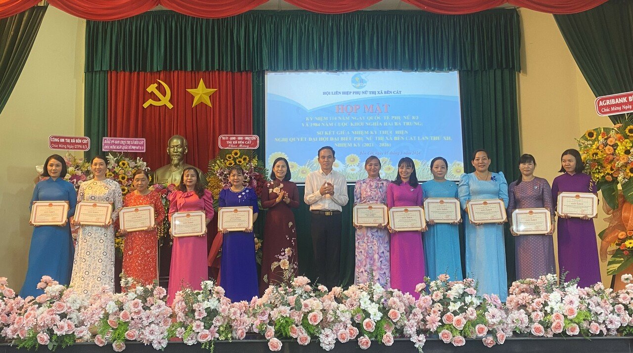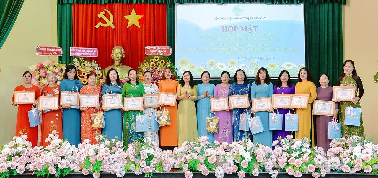 Với tinh thần đổi mới mạnh mẽ, xây dựng tổ chức Hội vững mạnh toàn diện, nâng cao vai trò trách nhiệm của tổ chức Hội. Trong nửa nhiệm kỳ qua cán bộ, hội viên, phụ nữ Bến Cát luôn bám sát Nghị quyết Đại hội Đảng các cấp, Nghị quyết Đại hội đại biểu Phụ nữ các cấp, mục tiêu phát triển kinh tế xã hội của địa phương, đã năng động tích cực đổi mới nội dung, phương thức hoạt động hướng mạnh các hoạt động về cơ sở, tăng cường tuyên truyền vận động hội viên phụ nữ phấn đấu hoàn thành cơ bản các mục tiêu nhiệm vụ Nghị quyết Đại hội phụ nữ thị xã nhiệm kỳ 2021-2026 đề ra. Các cấp Hội đã giúp 37 nữ chủ hộ thoát nghèo, 28 nữ chủ hộ cận nghèo có địa chỉ và hộ khó khăn phát triển kinh tế, nâng cao mức sống. Trong thực hiện cuộc vận động, Hội đã vận động hội viên, phụ nữ và nhân dân thực hiện phân loại rác thải tại nguồn, đổ rác đúng nơi quy định. Nhiều mô hình được duy trì và nhân rộng như xây dựng 52 “Tuyến đường xanh-sạch-đẹp”; 13“Tuyến đường hoa”; mô hình “Thu gôm phế liệu”; mô hình “Ươm cây giống, trồng cây xanh”; mô hình “Tuyến đường không thùng rác”...thực hiện có hiệu quả chương trình “Mỗi phụ nữ-một cây xanh”, “Mỗi cơ sở hội-một công trình xanh”, Hội phát động chương trình và trao tặng 3.460 cây xanh, cây cảnh cho hội viên, phụ nữ; cấp Hội đã vận động, thăm hỏi, tặng quà và hỗ trợ thường xuyên các gia đình chính sách, trẻ em mồ côi, hội viên phụ nữ nghèo đã vận động được trên 3 tỷ và hỗ trợ cho hơn 7000 lượt phụ nữ, trẻ em nghèo, khó khăn. Chương trình “Mẹ đỡ đầu”, “Triệu phần quà san sẻ yêu thương” luôn được Hội thực hiện có hiệu quả; Hội đã giải ngân giúp cho 1.737 lượt hội viên phụ nữ vay vốn, với tổng số tiền 114 tỷ 174 triệu đồng; giới thiệu việc làm cho hơn 5.000 phụ nữ làm việc trong các công ty và nhận làm hàng gia công; xây mới và sửa chữa 12 mái ấm tình thương với tổng trị giá từ các nguồn trên 1 tỷ 200 triệu đồng, trao 120 suất hỗ trợ sinh kế cho phụ nữ nghèo góp phần giảm tỷ lệ hộ nghèo toàn thị xã từ 0,85% (2021) xuống còn 0,81% (cuối năm 2023)…