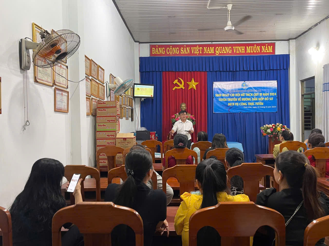 Tại buổi sinh hoạt, Hội LHPN phường Thới Hoà đã phối hợp tuyên truyền cho cán bộ, hội viên nữ công nhân nhà trọ những kiến thức cơ bản về nộp hồ sơ dịch vụ công trực tuyến, trong đó chú trọng vào lĩnh vực đăng kí, gia hạn tạm trú. Bên cạnh đó, Hội LHPN phường cũng đã tuyên truyền kỷ niệm 79 năm ngày Quốc Khánh 2/9; lưu ý các Chi hội cần nắm tình hình tư tưởng và an ninh trật tự trên địa bàn trước và sau lễ.