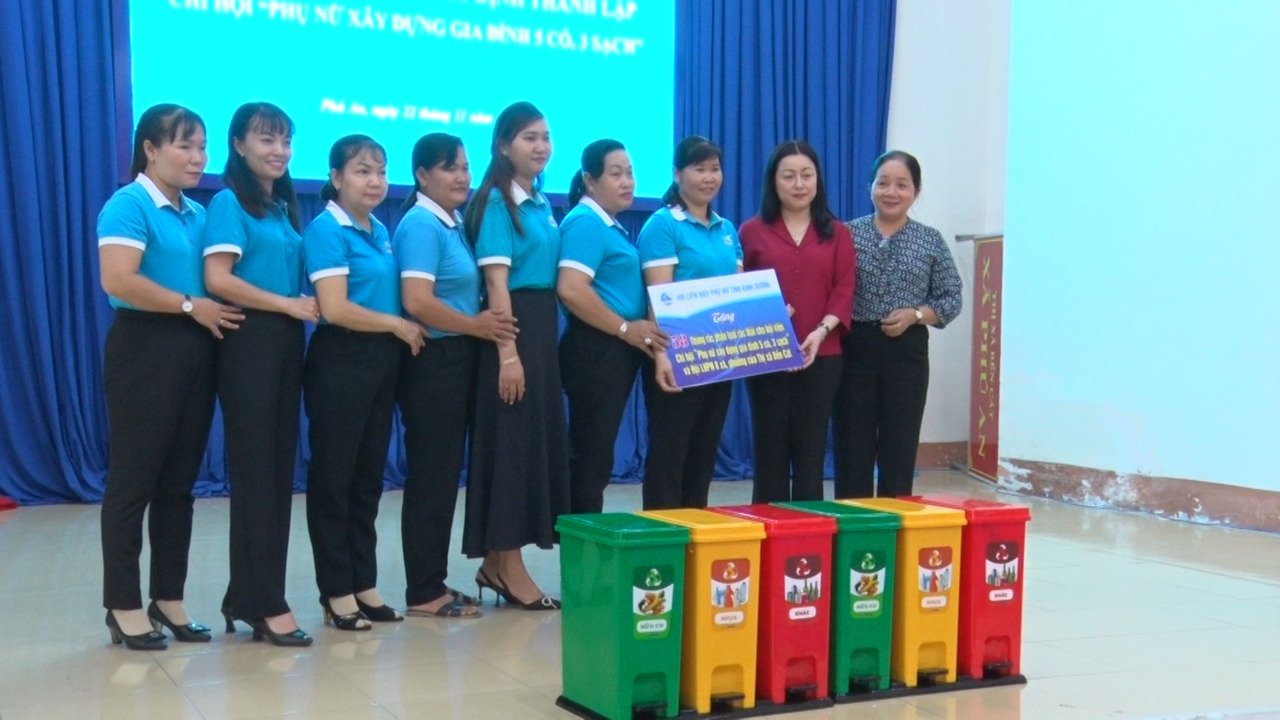 Dịp này, Hội LHPN tỉnh đã trao tặng 58 thùng rác cho Chi hội và Hội LHPN 8 xã, phường. Trước đó, Hội LHPN thị xã cũng đã lựa chọn ấp Phú Thứ, xã Phú An và khu phố 3, phường Mỹ Phước triển khai xây dựng mô hình "Gia đình 5 có, 3 sạch".
