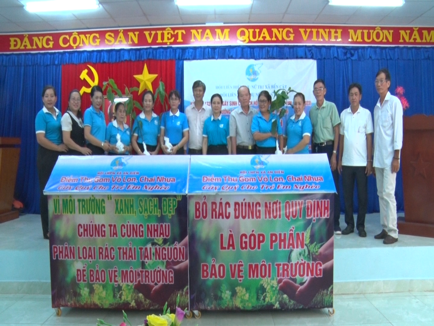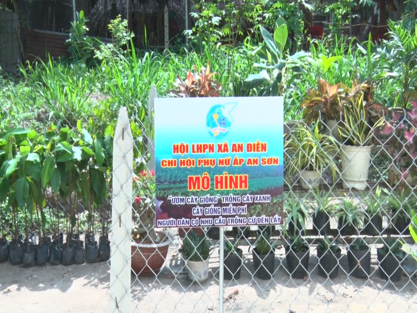 Với mục tiêu nhân 1.000 cây giống trồng tại Văn phòng ấp An Sơn và phát miễn phí cho hội viên, người dân có nhu cầu trồng xây xanh đồng thời chia về các ấp trên địa bàn xã thực hiện chương trình đổi rác thải lấy cây xanh, Hội LHPN xã An Điền tổ chức vườn ươm cây giống tại Văn phòng ấp An Sơn với nhiều loại hoa, cây kiểng và cây xanh phân tán sau đó đưa đến tay hội viên để trồng ở các tuyến đường trên địa bàn ấp và nhân rộng toàn xã.