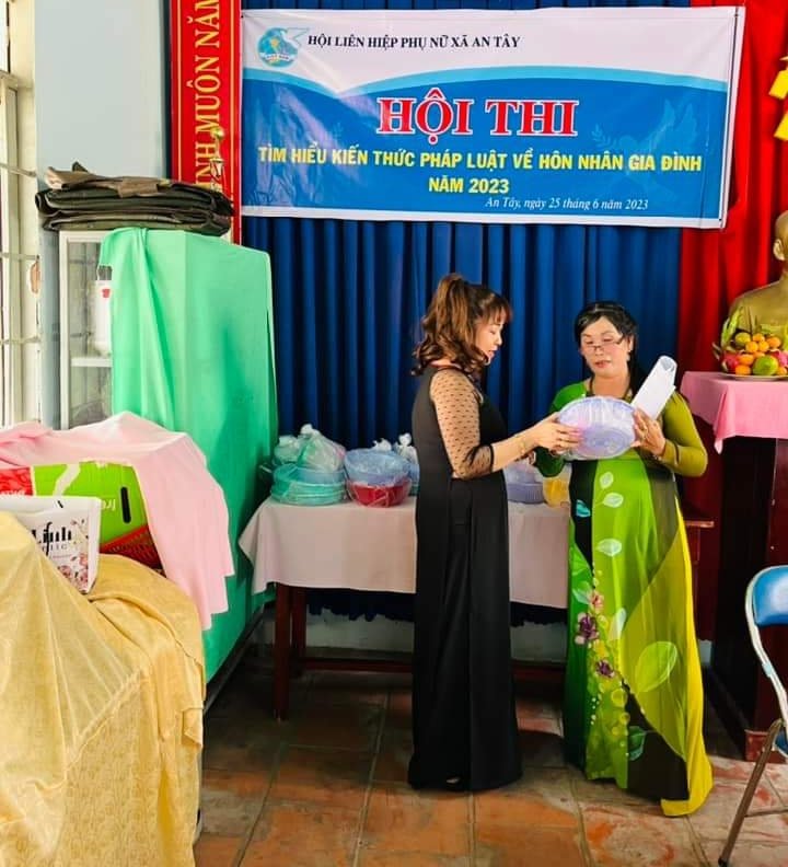 Hưởng ứng Ngày Gia đình Việt Nam 28/6, Hội LHPN xã An Tây tổ chức Hội thi "Tìm hiểu kiến thức pháp luật về hôn nhân gia đình" năm 2023. Có hơn 60 hội viên, phụ nữ tham gia.