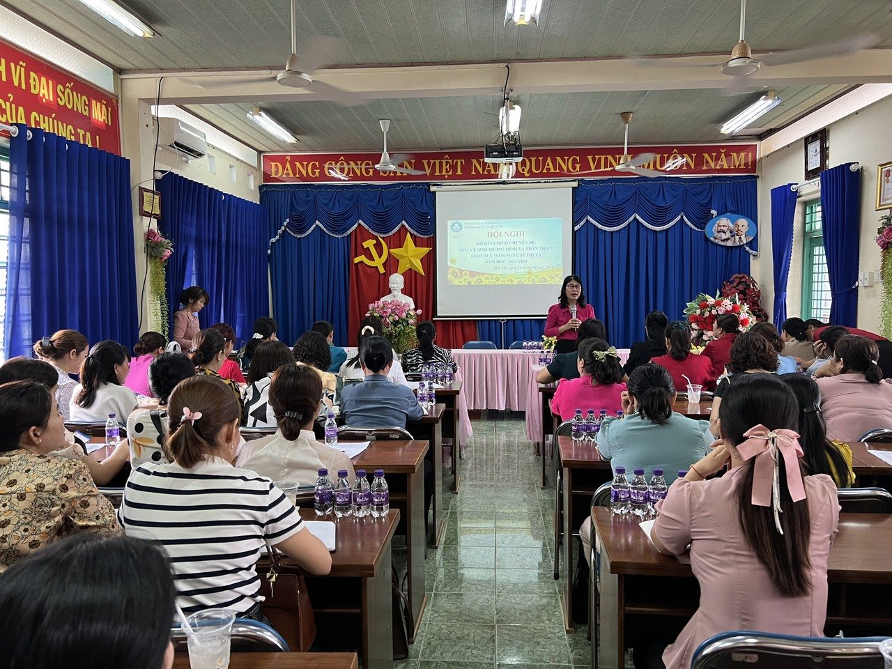 Hội nghị mô hình điểm chuyên đề: “Nhà vệ sinh thông minh và thân thiện” giáo dục mầm non cấp thị xã năm học 2023 – 2024