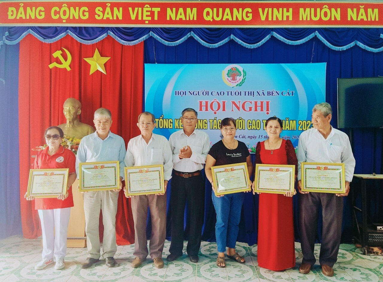 Với mục đích sống vui, sống khỏe, sống có ích, trong năm qua, Hội Người cao tuổi thị xã Bến Cát luôn quan tâm chăm sóc hội viên cả về vật chất lẫn tinh thần. Theo đó, trong năm 2023, Hội đã tổ chức trao tặng trên 1.000 phần quà với tổng số tiền gần 480 triệu đồng; thăm viếng, phúng điếu các cụ qua đời với tổng số tiền gần 200 triệu đồng; thăm hỏi, tặng quà cho người cao tuổi nghèo, cận nghèo có hoàn cảnh khó khăn với tổng số tiền trên 436 triệu đồng. Bên cạnh đó, nhằm tạo điều kiện cho người cao tuổi có cuộc sống vui vẻ, khỏe mạnh về mặt tinh thần, Hội Người cao tuổi còn tổ chức nhiều mô hình như: Câu lạc bộ thể dục dưỡng sinh, Thơ – Văn, Văn nghệ - Đờn ca tài tử… để người cao tuổi tham gia sinh hoạt. Đến nay đã thành lập được 23 câu lạc bộ thể dục dưỡng sinh, 01 câu lạc bộ Thơ – Văn với trên 460 thành viên tham gia. Thông qua các câu lạc bộ đã tổ chức cho người cao tuổi được giao lưu học tập và sống vui, sống khỏe.