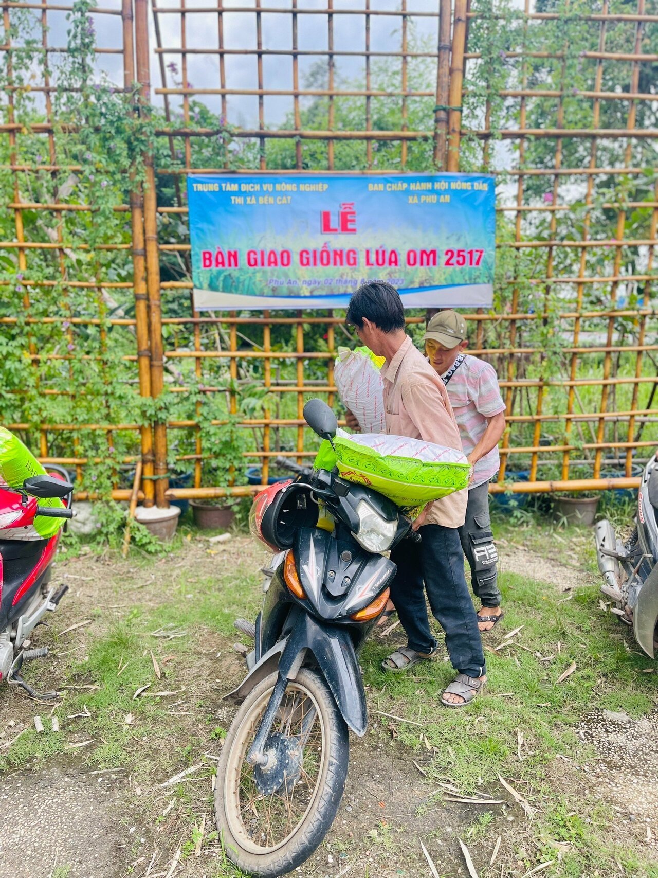 Nhằm từng bước đưa các giống lúa mới đạt năng suất, chất lượng cao vào sản xuất nông nghiệp, ngày 02/8, Hội Nông dân xã Phú An phối hợp cùng Trung tâm Dịch vụ Nông nghiệp thị xã Bến Cát tổ chức bàn giao giống lúa OM 2517 cho các hộ nông dân trên địa bàn xã.