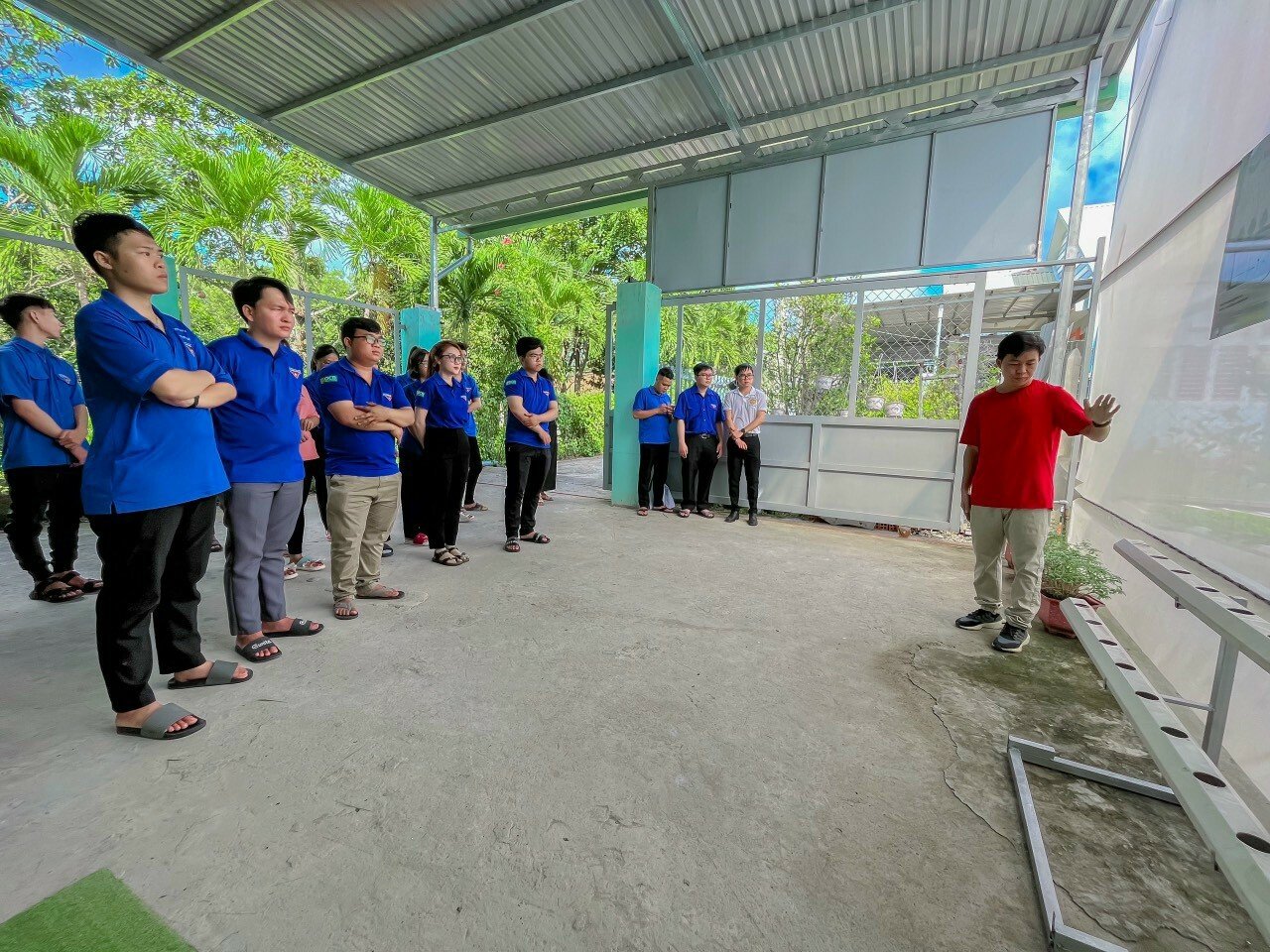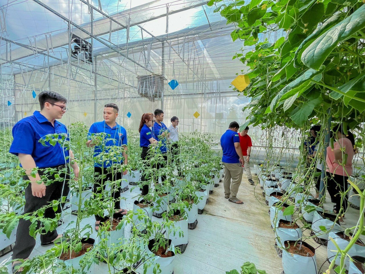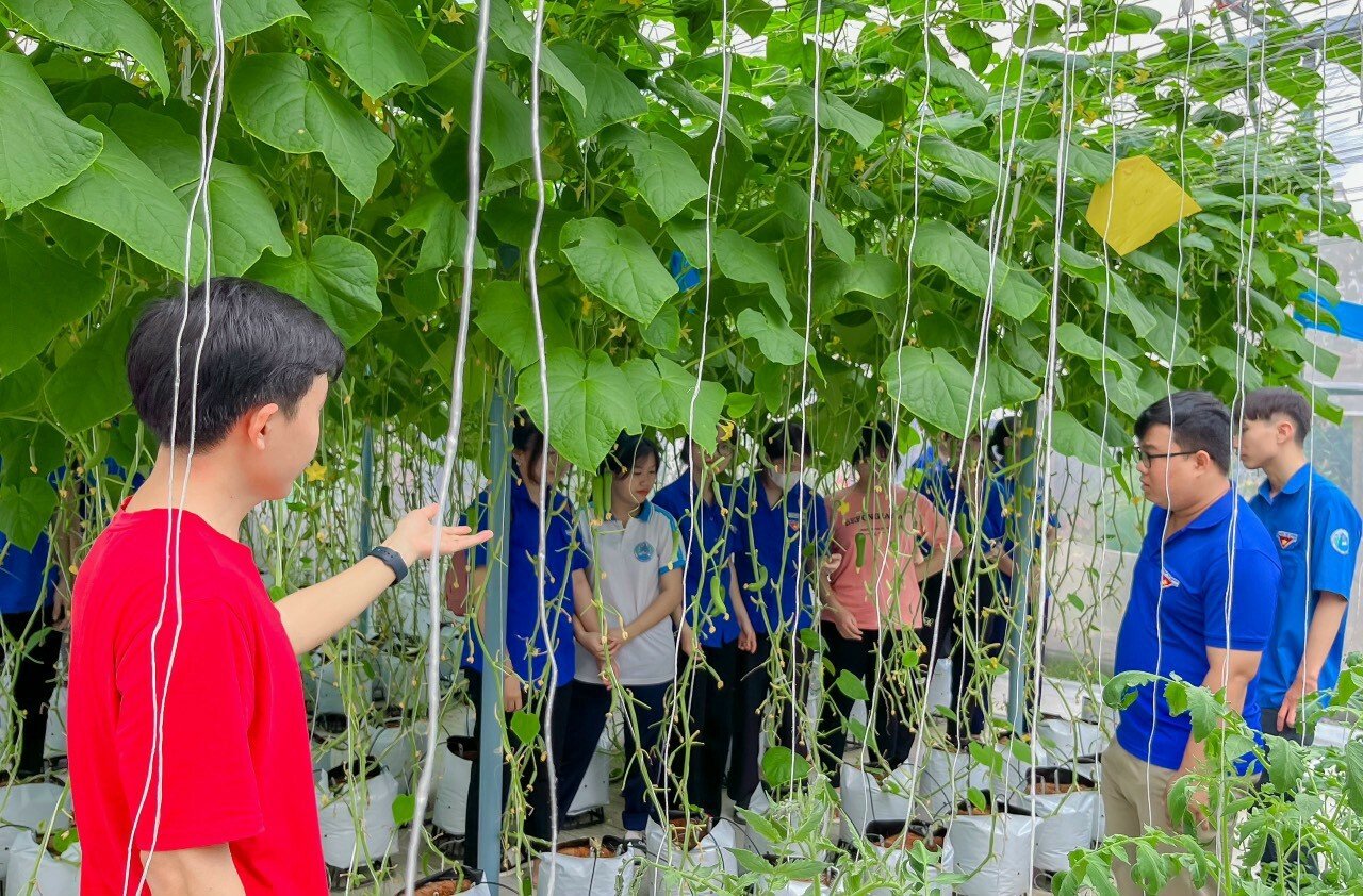 Tại Bách An Farm, các bạn đoàn viên, thanh niên được chia sẻ các kiến thức cơ bản về trồng rau thủy canh như: xây dựng nhà màng, ươm giống, lắp đặt hệ thống tưới tuần hoàn, lắp đặt hệ thống làm mát giảm nhiệt độ trong nhà kính để giảm nhiệt độ trong nhà kính nhằm tạo ra môi trường thoáng mát cho cây phát triển tốt, đặc biệt là những loại rau ôn đới như cải xà lách.