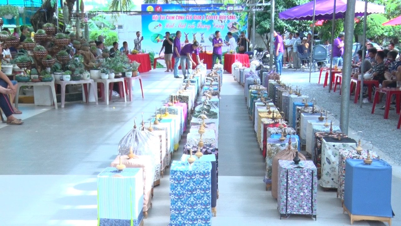 Hội thi “Chim hút mật 5 màu bụng vàng” thu hút hơn 200 lồng chim của các nghệ nhân trong và ngoài tỉnh Bình Dương tham gia.