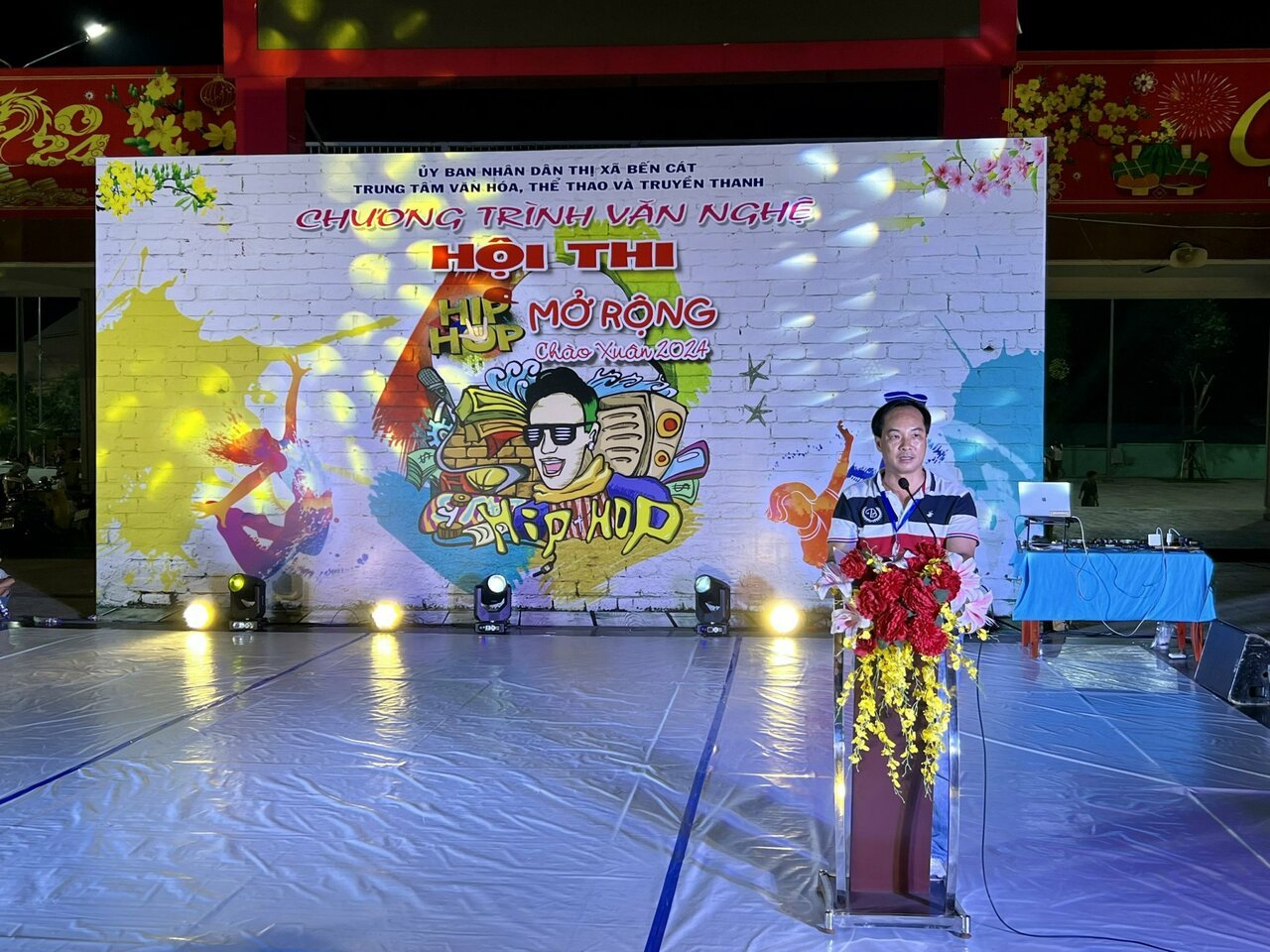 Tối 30/12, Trung tâm Văn hóa, Thể thao và Truyền thanh thị xã tổ chức Hội thi Hiphop mở rộng chào xuân 2024. Đến dự chương trình có ông Nguyễn Thanh Tùng – Giám đốc Trung tâm Văn hóa, Thể thao và Truyền thanh thị xã.