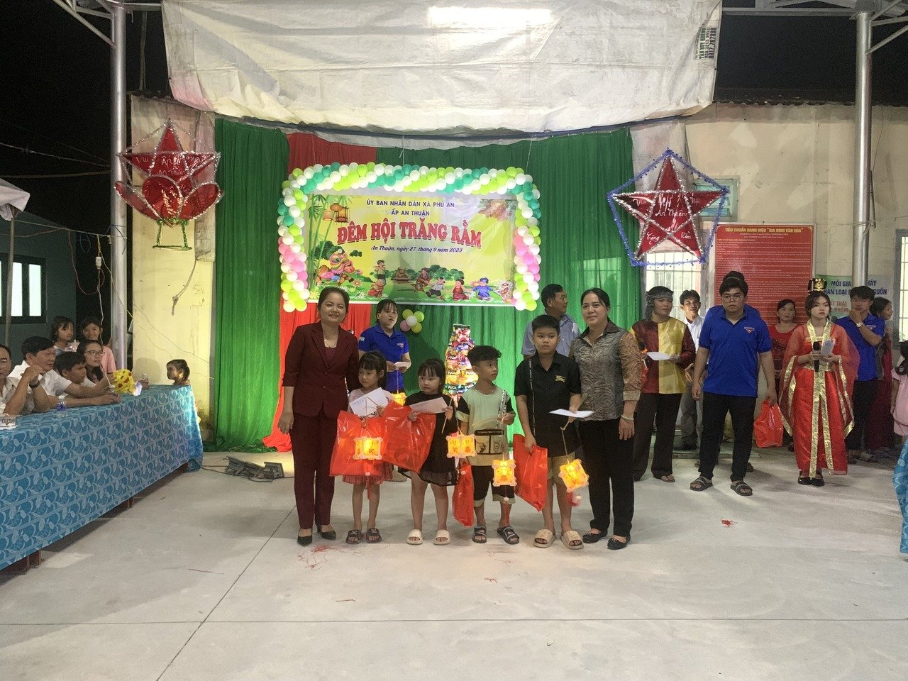 Cũng tại đêm hội, Ban lãnh đạo ấp An Thuận đã trao 250 phần quà cho các em thiếu nhi đến tham gia, đồng thời trao 18 phần quà cho các em thiếu nhi có hoàn cảnh khó khăn trên địa bàn xã.