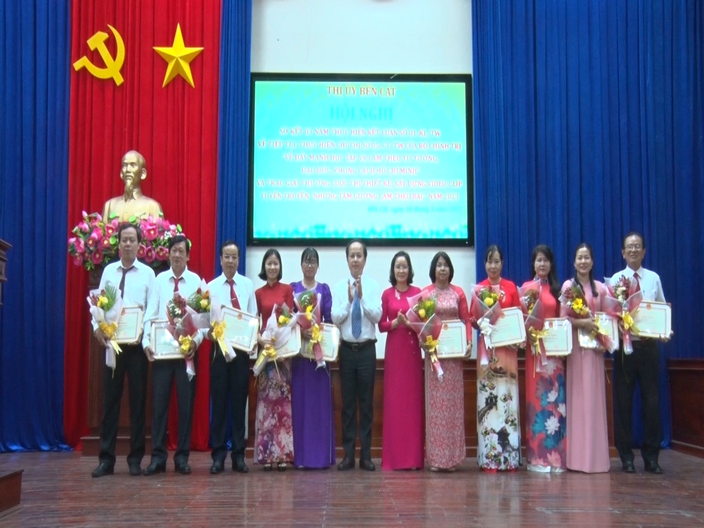 Trong 03 năm (2021 -2023), công tác triển khai quán triệt, tuyên truyền, tổ chức thực hiện Kết luận số 01-KL/TW luôn được lãnh đạo Thị ủy quan tâm đẩy mạnh bằng nhiều hình thức phong phú, đa dạng và ngày càng lan tỏa sâu rộng trong nhân dân. Kết quả đã triển khai được 133 hội nghị với trên 12.000 lượt người dự, trong đó, tỷ lệ đảng viên hàng năm tham gia học tập đạt trên 99%. Song song đó, công tác tuyên truyền Kết luận số 01-KL/TW còn được các tổ chức cơ sở đảng, ban, ngành, đoàn thể quan tâm triển khai thực hiện bằng nhiều hình thức phong phú, phù hợp với điều kiện cụ thể và từng đối tượng, như: thực hiện lồng ghép với tuyên truyền kỷ niệm các ngày lễ lớn của đất nước, địa phương, các phong trào thi đua yêu nước, các hội thi, hội diễn văn nghệ, tọa đàm, hành trình về nguồn của đoàn viên thanh niên; trong hệ thống giáo dục và các lớp đào tạo, bồi dưỡng cán bộ trong hệ thống chính trị. Cùng với đó, tuyên truyền trực quan sinh động bằng pano, áp phích; bổ sung các đầu sách kể về tấm gương, đạo đức, phong cách của Bác vào tủ sách của các trường học và phường, xã...; tuyên truyền trên các phương tiện thông tin đại chúng; trên các trang web, nhóm mạng xã hội Facebook, Zalo, đăng tải các nội dung, tài liệu về tư tưởng, đạo đức, phong cách Hồ Chí Minh trên Trang Thông tin điện tử thị xã để giúp cho cán bộ, đảng viên và nhân dân dễ dàng tiếp cận, truy cập, nghiên cứu, học tập và làm theo… từ đó xuất hiện nhiều cách làm hay, mô hình hiệu quả, các gương điển hình trong học tập và làm theo Bác đã tạo sức lan tỏa trong cán bộ, đảng viên và nhân dân toàn thị xã, như mô hình: “Gần dân giúp dân”; “Nuôi heo đất bảo đảm an sinh xã hội”; “Chiếc cặp yêu thương”; “Làm việc ngày thứ bảy”; “Trả hồ sơ ngoài giờ”; Tổ cùng tiến”… góp phần thúc đẩy phát triển kinh tế, văn hóa, xã hội, đặc biệt là hoàn thành các Đề án, đảm bảo các bước để trình cấp có thẩm quyền xem xét quyết định nâng xã An Điền và An Tây trở thành phường, thị xã Bến Cát lên thành phố trực thuộc tỉnh.