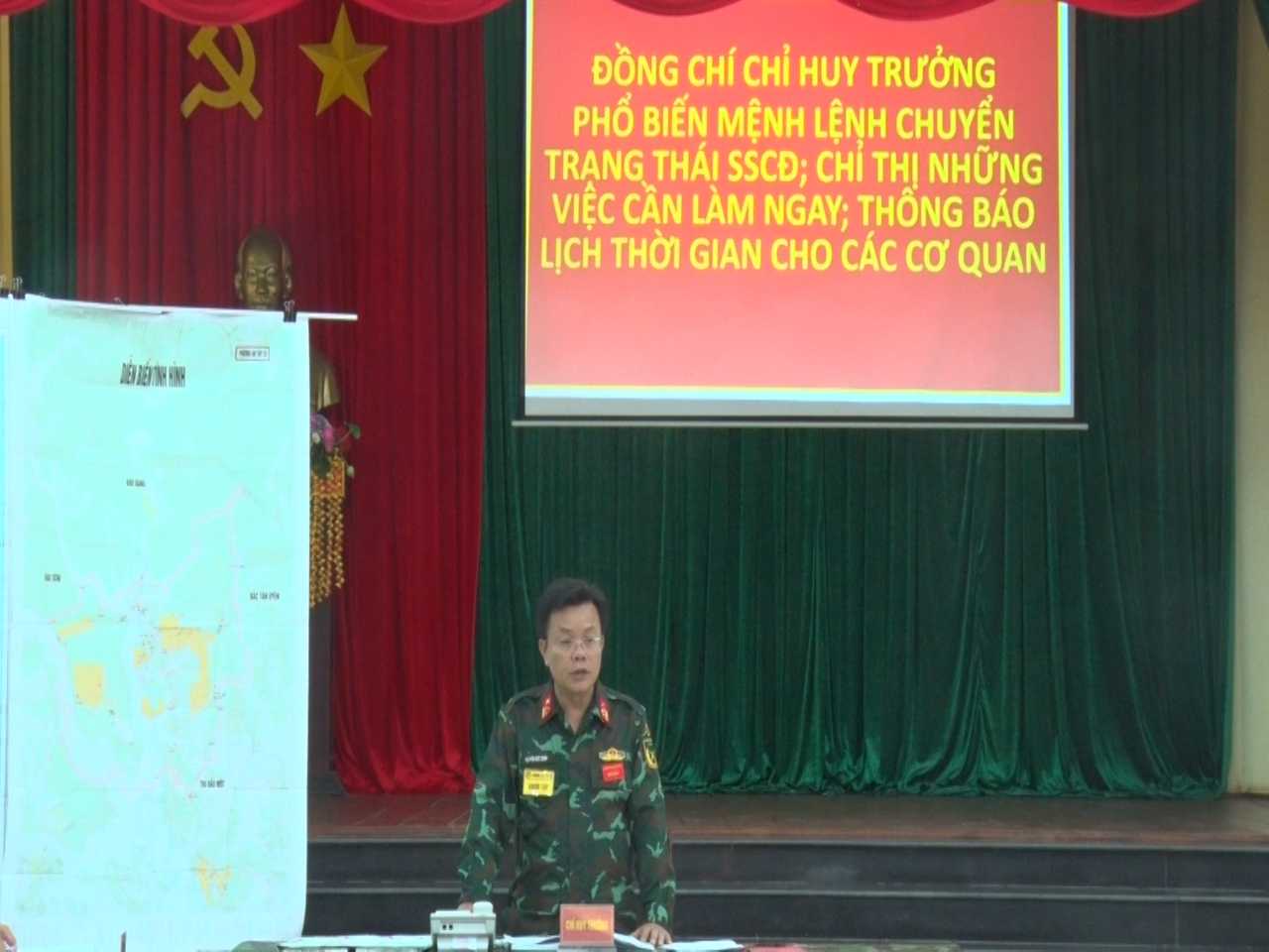 Theo đó, nội dung huấn luyện gồm có 02 vấn đề: Hành động của lực lượng vũ trang thị xã chuyển trạng thái sẵn sàng từ thường xuyên lên trạng thái sẵn sàng chiến đấu cao làm nhiệm vụ A và Cơ động lực lượng đi trước kiểm tra đường, khu sơ tán, khu căn cứ chiến đấu.