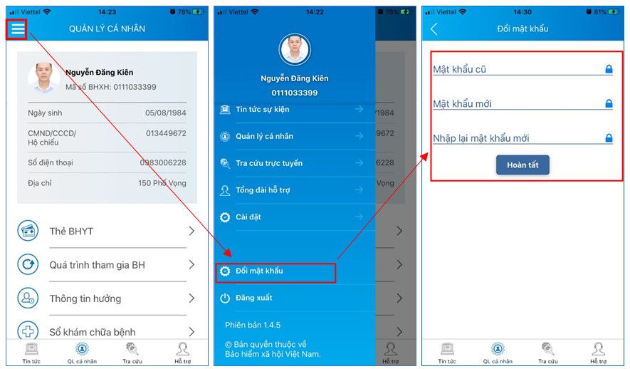 Bạn nên thực hiện đổi mật khẩu cho lần đăng nhập đầu tiên nhằm bảo vệ thông tin cá nhân. Để đổi mật khẩu bạn làm theo các bước ở hình sau: