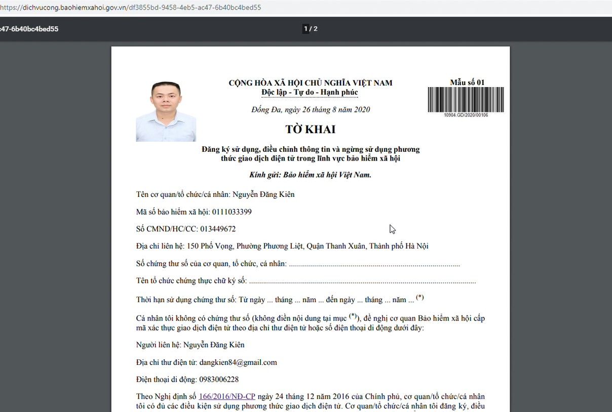 Cuối cùng, các bạn tiến hành In, ký và nộp tờ khai tại Bộ phận tiếp nhận hồ sơ của Cơ quan BHXH mà bạn đã chọn ở trên.