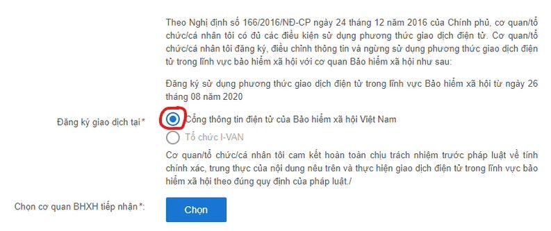 Lựa chọn nơi đăng ký giao dịch điện tử tại Cổng thông tin điện tử BHXH việt Nam