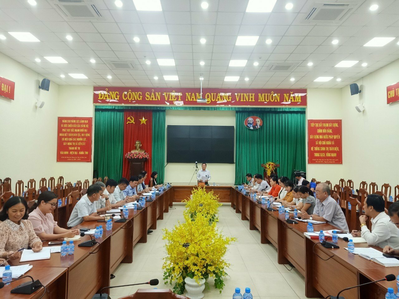 Tại cuộc họp, các địa phương, đơn vị đã báo cáo nhanh tiến độ thực hiện Đề án 02 của đơn vị, địa phương đồng thời được nghe triển khai Công văn số 417-CV/BDVTU ngày 26/10/2022 của Ban Dân vận Tỉnh ủy về việc hướng dẫn thực hiện Đề án 02-ĐA/TU “Công tác dân vận tham gia xây dựng nếp sống văn hóa – văn minh” tỉnh Bình Dương giai đoạn 2021 – 2025.