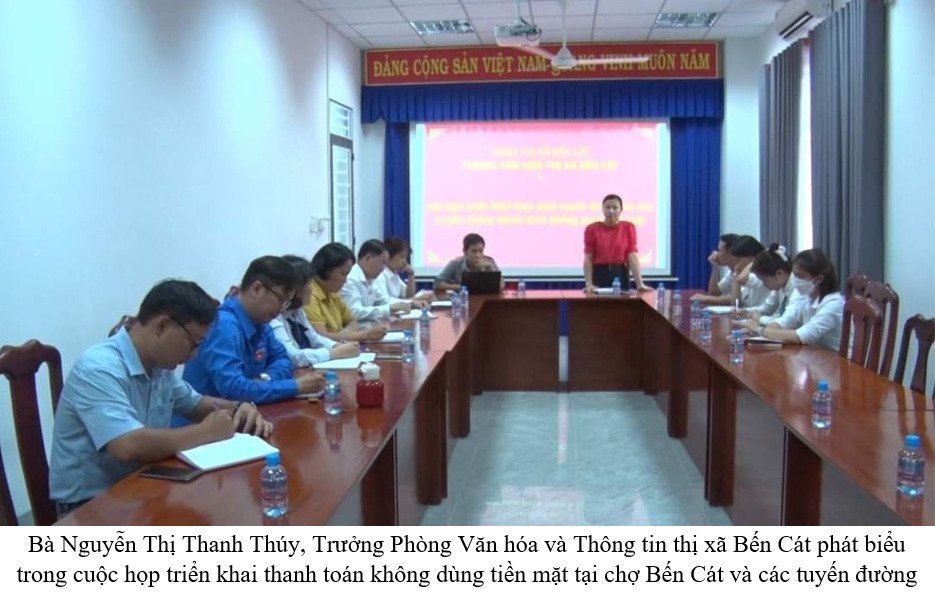 Xác định thanh toán không dùng tiền mặt (TTKDTM) là xu thế tất yếu trong bối cảnh chuyển đổi số; Trong thời gian qua, thị xã Bến Cát đã triển khai nhiều giải pháp tuyên truyền, vận động đẩy mạnh thanh toán không dùng tiền mặt trong các trường học, cơ sở y tế, các giao dịch giữa người dân và chính quyền,… Nhằm góp phần đảm bảo an toàn, giảm thiểu rủi ro cho quá trình bán và mua hàng hoá của người dân, giúp giảm chi phí xã hội, nâng cao hiệu quả kinh doanh, tiêu dùng, nâng cao hiệu quả quản lý, giám sát của các cơ quan quản lý nhà nước, minh bạch hóa các hoạt động thanh toán; thị xã Bến Cát đang tiếp tục đẩy mạnh tuyên truyền, vận động hướng đến mục tiêu xây dựng tất cả các tuyến đường, các chợ truyền thống trên địa bàn thực hiện thanh toán không dùng tiền mặt.