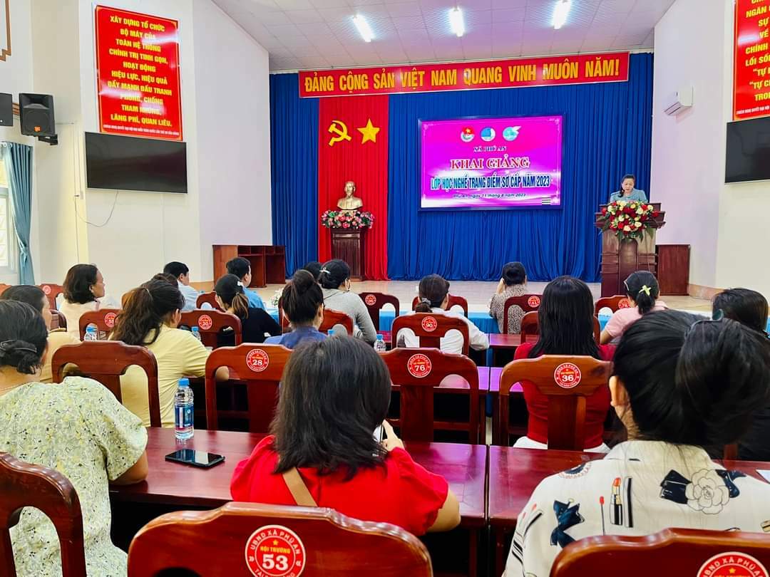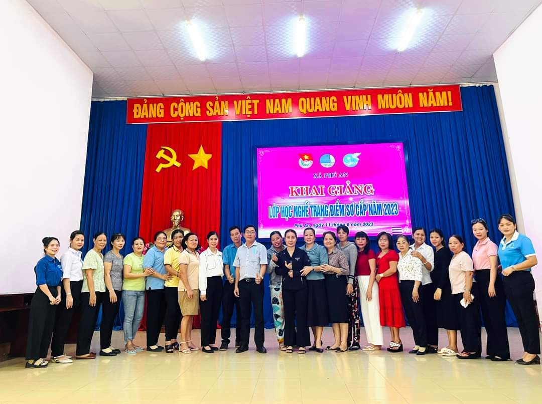 Thực hiện kế hoạch đào tạo nghề trình độ sơ cấp, đào tạo dưới 03 tháng trên địa bàn thị xã Bến Cát giai đoạn 2023 – 2025, Phòng Lao động - Thương binh và Xã hội thị xã Bến Cát phối hợp cùng Đoàn thanh niên, Hội LHTN, Hội LHPN xã Phú An tổ chức khai giảng lớp học nghề trang điểm sơ cấp năm 2023 cho 24 học viên là lao động nông thôn trên địa bàn xã Phú An.