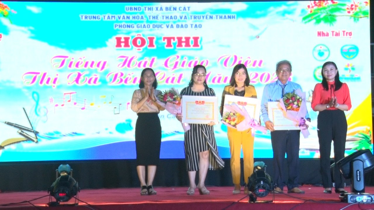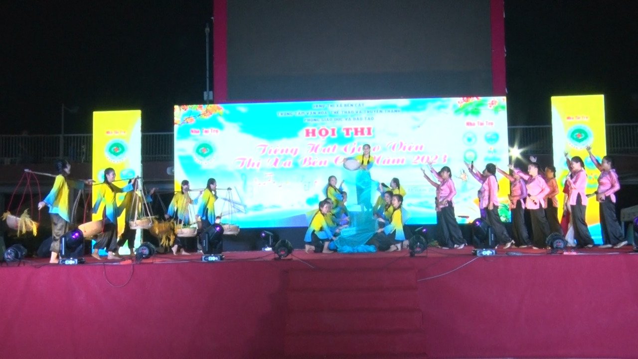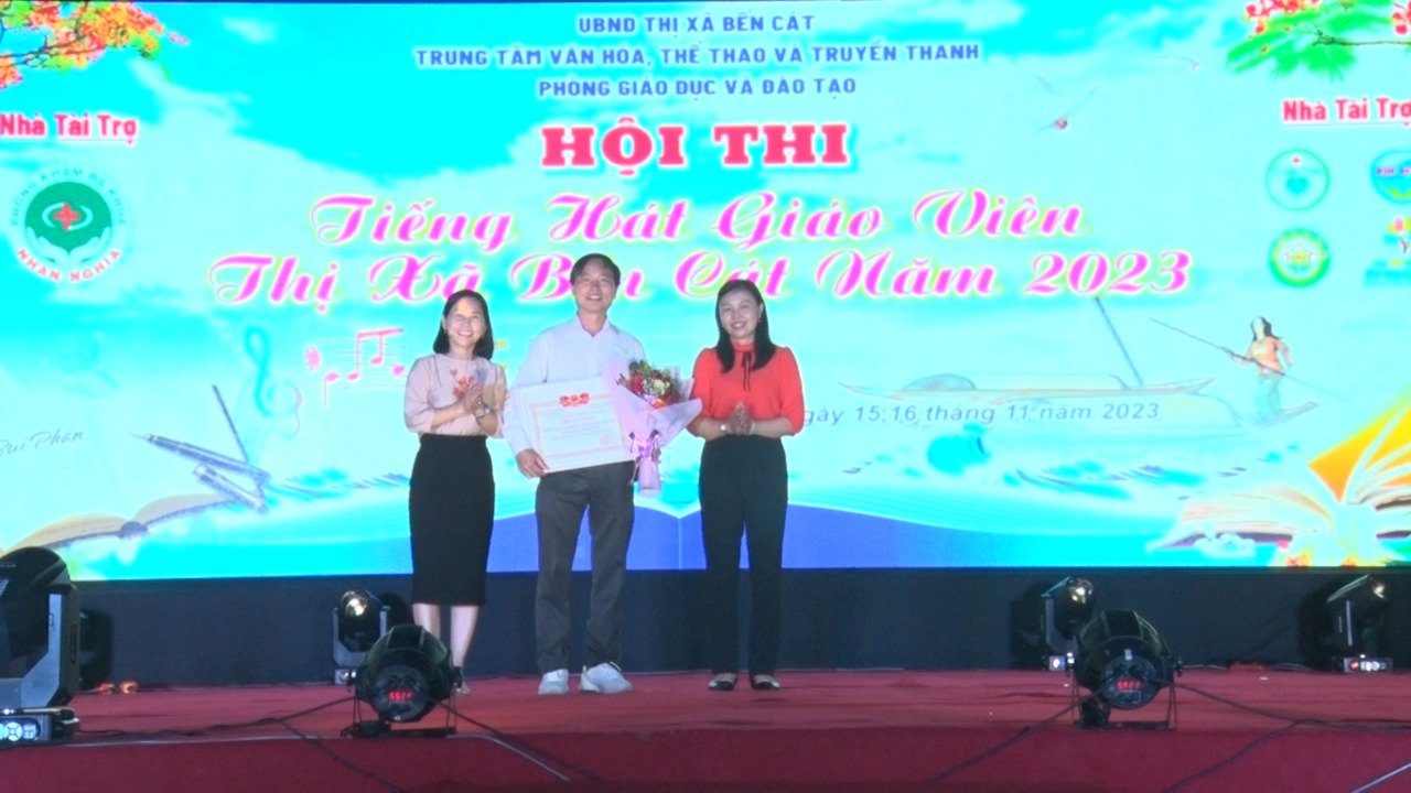 Thiết thực chào mừng kỷ niệm 41 năm ngày Nhà giáo Việt Nam (20/11/1982 - 20/11/2023), đồng thờixây dựng đời sống văn hóa cho cán bộ, nhà giáo và người lao động trong ngành giáo dục, tối 15/11, Trung tâm Văn hoá, Thể thao và Truyền thanh thị xã Bến Cát phối hợp cùng Phòng Giáo dục và Đào tạo thị xã tổ chức Hội thi “Tiếng hát giáo viên” năm 2023. Đến dự có bà Trần Thị Thảo – Phó Chủ tịch UBND thị xã, bà Nguyễn Thị Thanh Thúy – Trưởng Phòng Văn hóa và Thông tin, ông Nguyễn Phú Hải – Trưởng Phòng Giáo dục và Đào tạo, ông Nguyễn Thanh Tùng – Giám đốc Trung tâm Văn hoá, Thể thao và Truyền thanh thị xã.