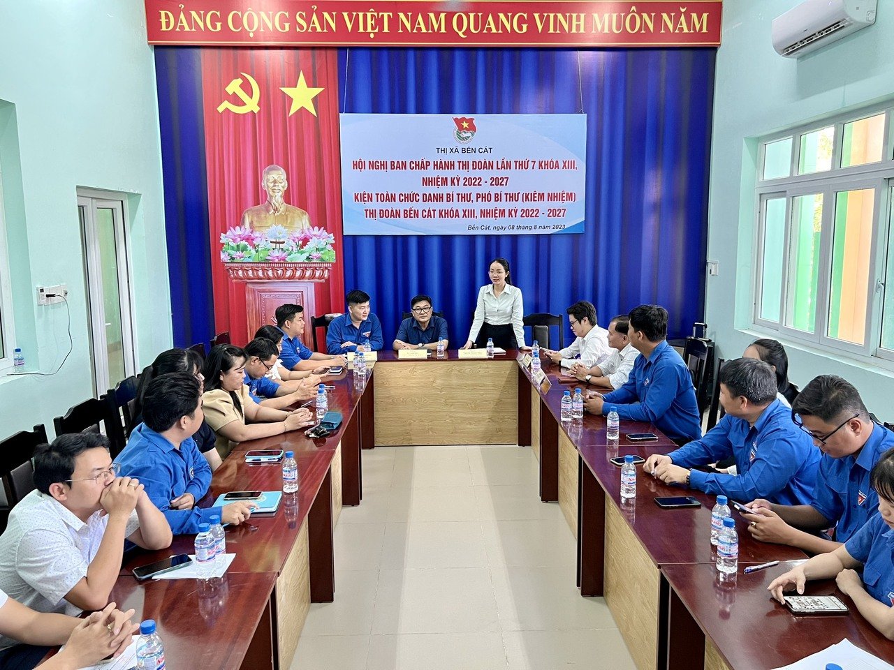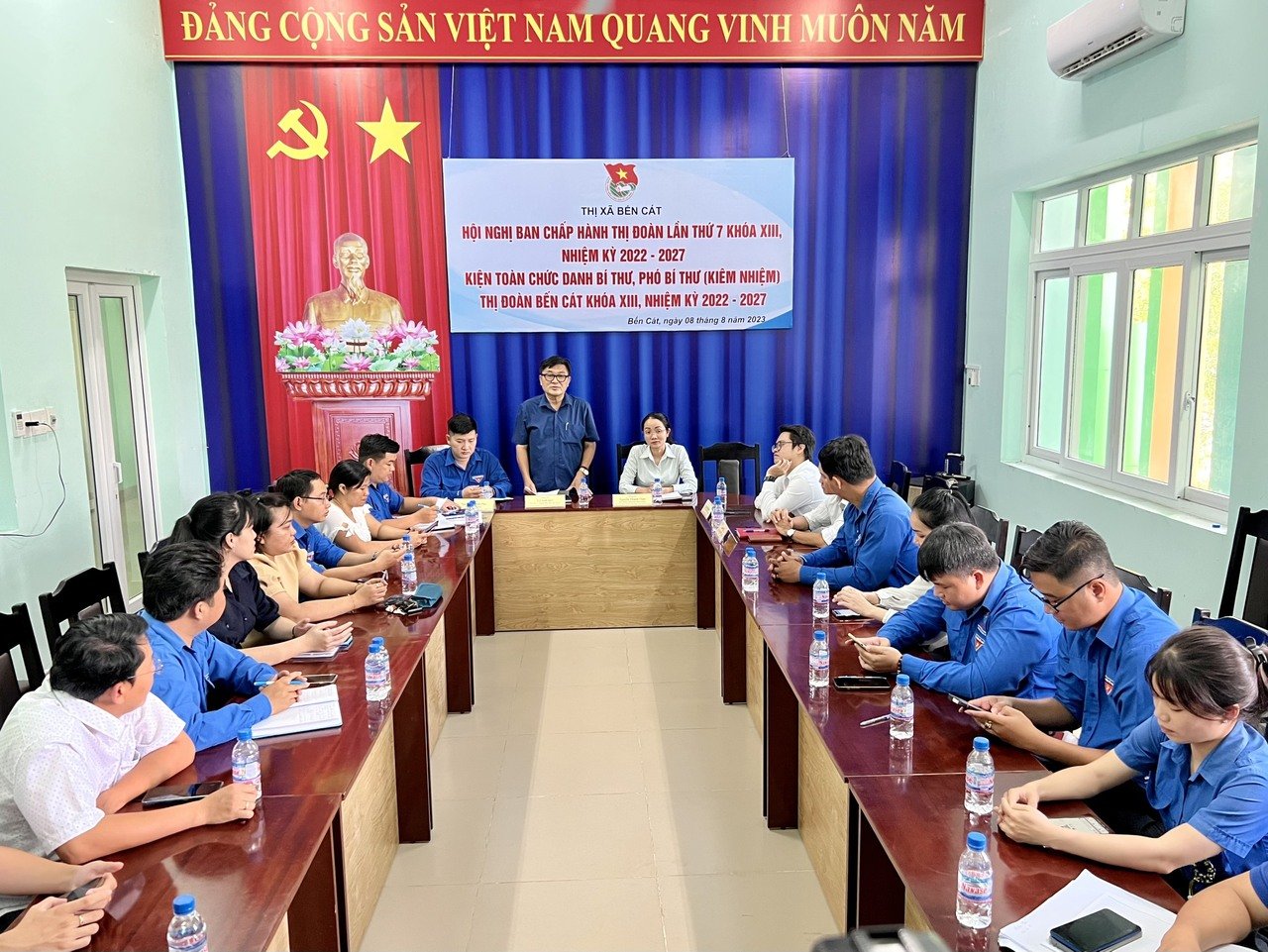 Ngày 08/8, Thị đoàn Bến Cát tổ chức Hội nghị Ban Chấp hành Thị đoàn lần thứ 7, khóa XIII, nhiệm kỳ 2022 – 2027. Đến dự có đồng chí Nguyễn Thanh Thảo – Phó Bí thư Tỉnh đoàn Bình Dương, đồng chí Lê Anh Quý – Trưởng Ban Dân vận Thị ủy, Chủ tịch Ủy ban Mặt trận Tổ quốc Việt Nam thị xã, cùng đại diện lãnh đạo Ban Tổ chức Thị ủy.