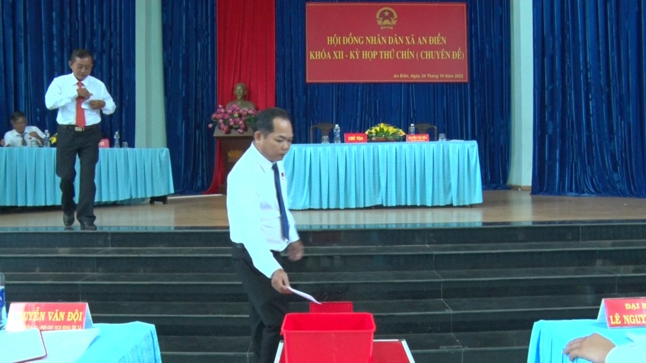 Cũng tại kỳ họp này, HĐND xã An Điền tiến hành bầu cử chức danh Chủ tịch HĐND xã nhiệm kỳ 2021 – 2026. Kết quả, đồng chí Nguyễn Minh Đức – Đảng ủy viên, Chủ tịch Ủy ban MTTQ Việt Nam xã được trúng cử chức danh Chủ tịch HĐND xã nhiệm kỳ 2021 – 2026 với số phiếu đồng ý đạt 62,5%.