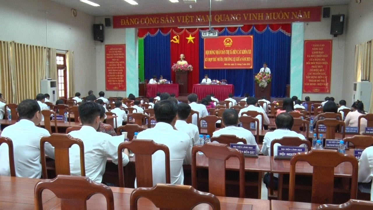 Sau một ngày làm việc khẩn trương, nghiêm túc, trách nhiệm Kỳ họp thứ mười (thường lệ giữa năm 2023) Hội đồng nhân dân thị xã Bến Cát khóa XII, nhiệm kỳ 2021 – 2026, đã hoàn thành toàn bộ chương trình đề ra.