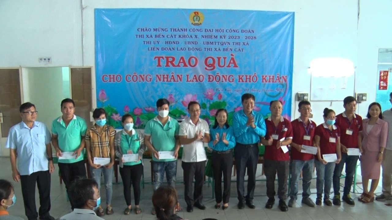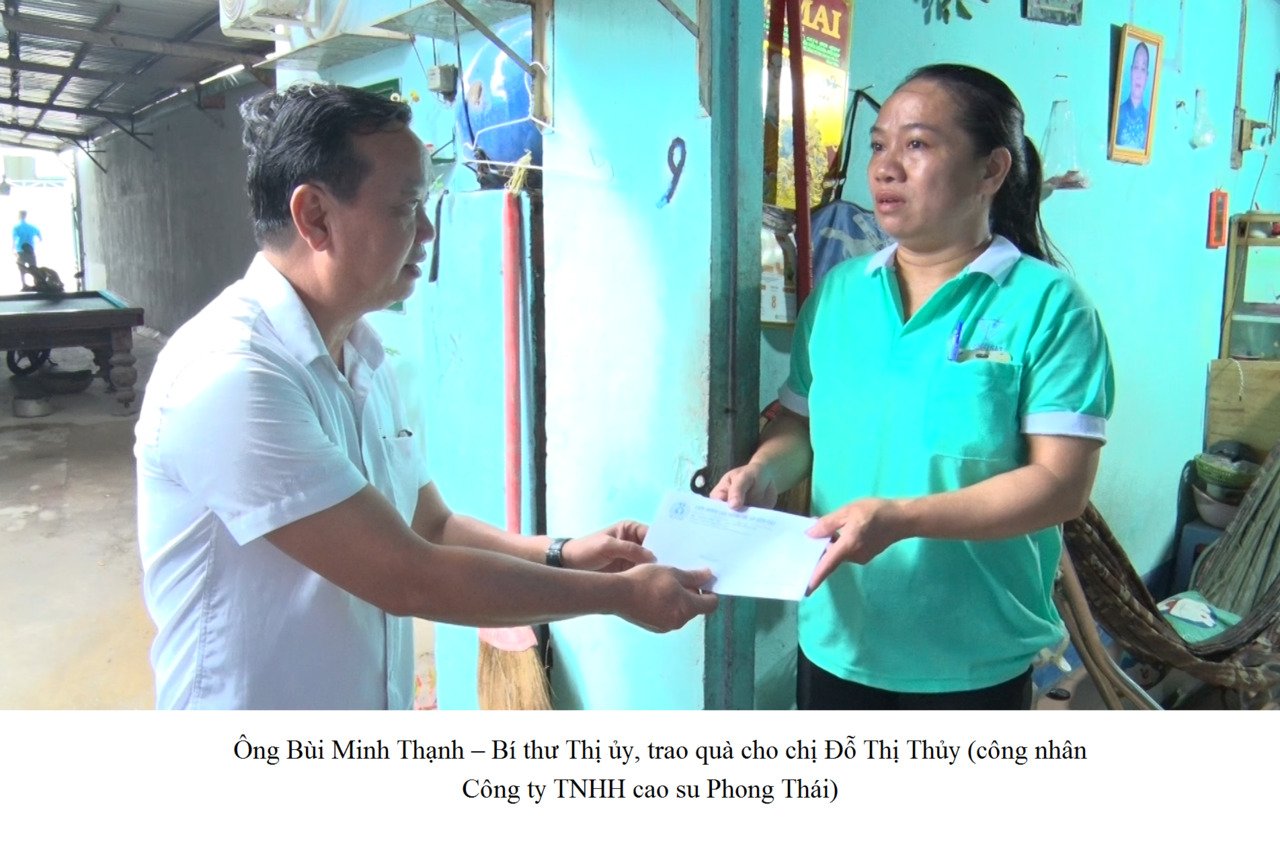 Lãnh đạo Bến Cát thăm và tặng cho công nhân lao động có hoàn cảnh khó khăn