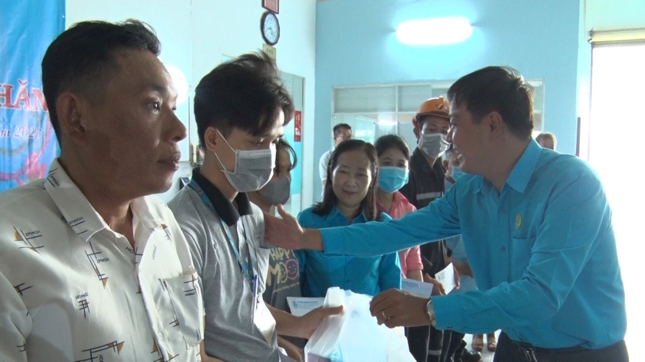 Tiếp đó, đoàn đã đến thăm, động viên và tặng quà cho 80 công nhân lao động có hoàn cảnh khó khăn thuộc 14 công ty trên địa bàn thị xã, với tổng số tiền 80 triệu đồng (từ nguồn xã hội hóa).