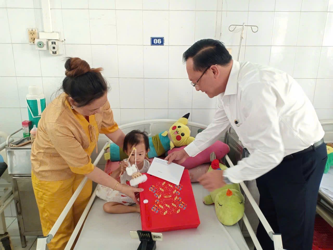 Tại nơi đến, Đoàn đã ân cần thăm hỏi sức khỏe các cháu, động viên gia đình và các y bác sĩ chăm sóc tận tâm các cháu nhanh chóng khỏi bệnh để đến trường tiếp tục học tập. Dịp này, lãnh đạo Bến Cát đã trao tặng hơn 20 phần quà, mỗi phần trị giá 300 ngàn đồng gồm bánh, lồng đèn và tiền mặt.