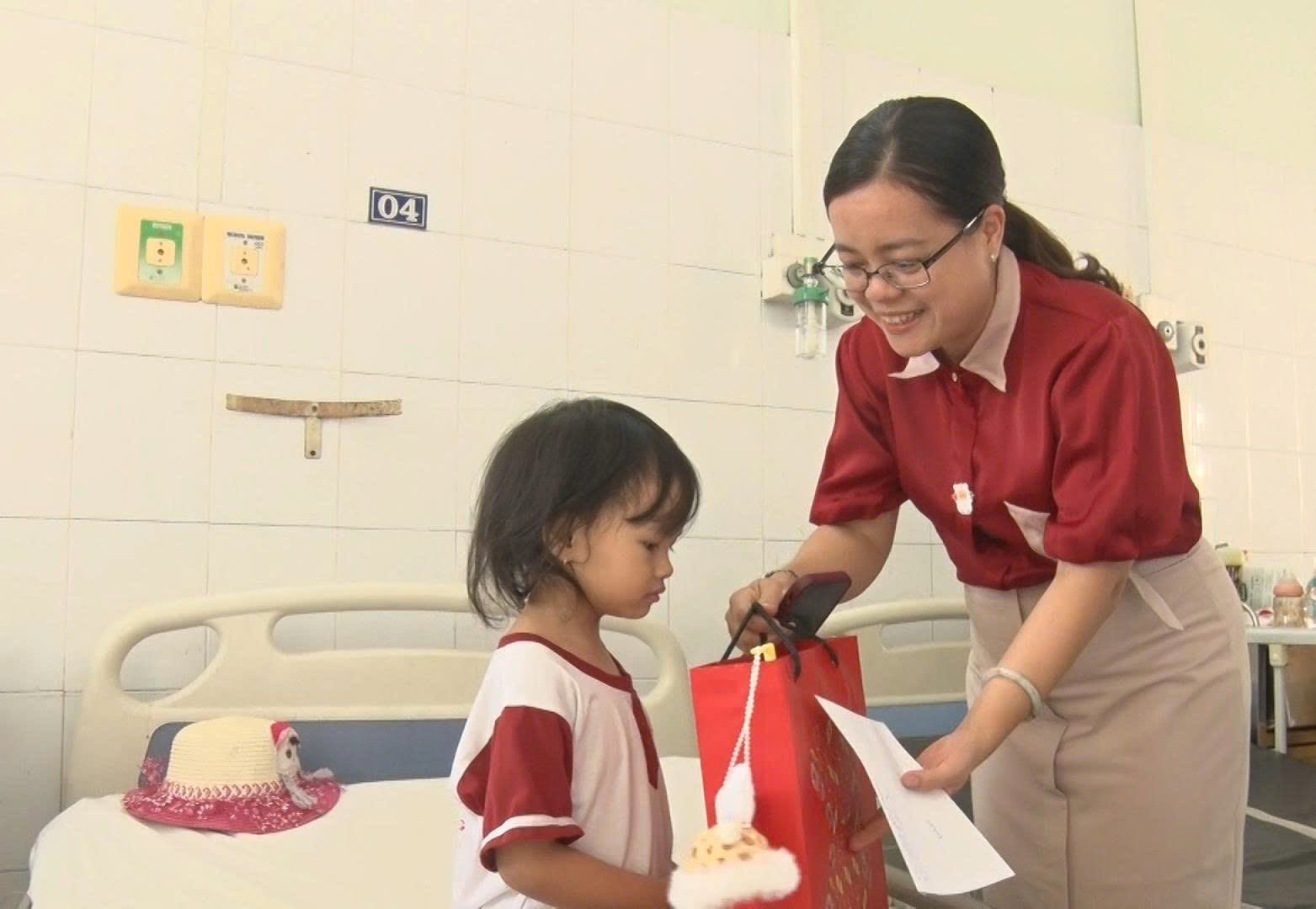Lãnh đạo phường Bến Cát tặng quà các cháu bệnh nhi nhân dịp Tết trung thu