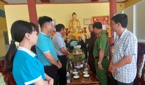 Lãnh đạo phường Chánh Phú Hòa thăm chức sắc Phật giáo nhân dịp Lễ Vu lan