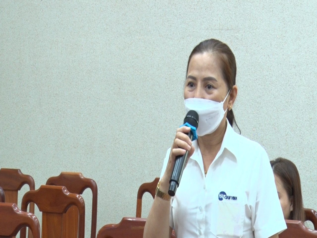 Cùng với đó, lắng nghe tâm tư nguyện vọng, ý kiến, kiến nghị của cán bộ công đoàn cơ sở, công nhân lao động về các vấn đề như: tạo điều kiện để công nhân lao động có thể kết nạp vào Đảng Cộng sản Việt Nam; đảm bảo an toàn vệ sinh thực phẩm; đảm bảo tình hình cung cấp điện trong mùa mưa để doanh nghiệp hoạt động sản xuất; tạo điều kiện để công nhân lao động tiếp cận các nguồn vốn vay, tránh tình trạng công nhân vay tín dụng đen; giá cả nhà trọ, chi phí sinh hoạt tăng cao ảnh hưởng đến đời sống người lao động chính quyền địa phương cần có giải pháp; thiếu trường trung học phổ thông gây khó khăn cho việc học tập của con công nhân lao động; đăng ký tạm trú cho người lao động nhập cư còn nhiều khó khăn; quan tâm đến thiết chế văn hóa, thể dục thể thao chăm lo đời sống tinh thần cho người lao động; thuốc bảo hiểm y tế chưa đáp ứng được nhu cầu khám chữa bệnh cho người lao động; các doanh nghiệp ngoài khu tập trung vào khu công nghiệp còn nhiều khó khăn cần thêm thời gian…
