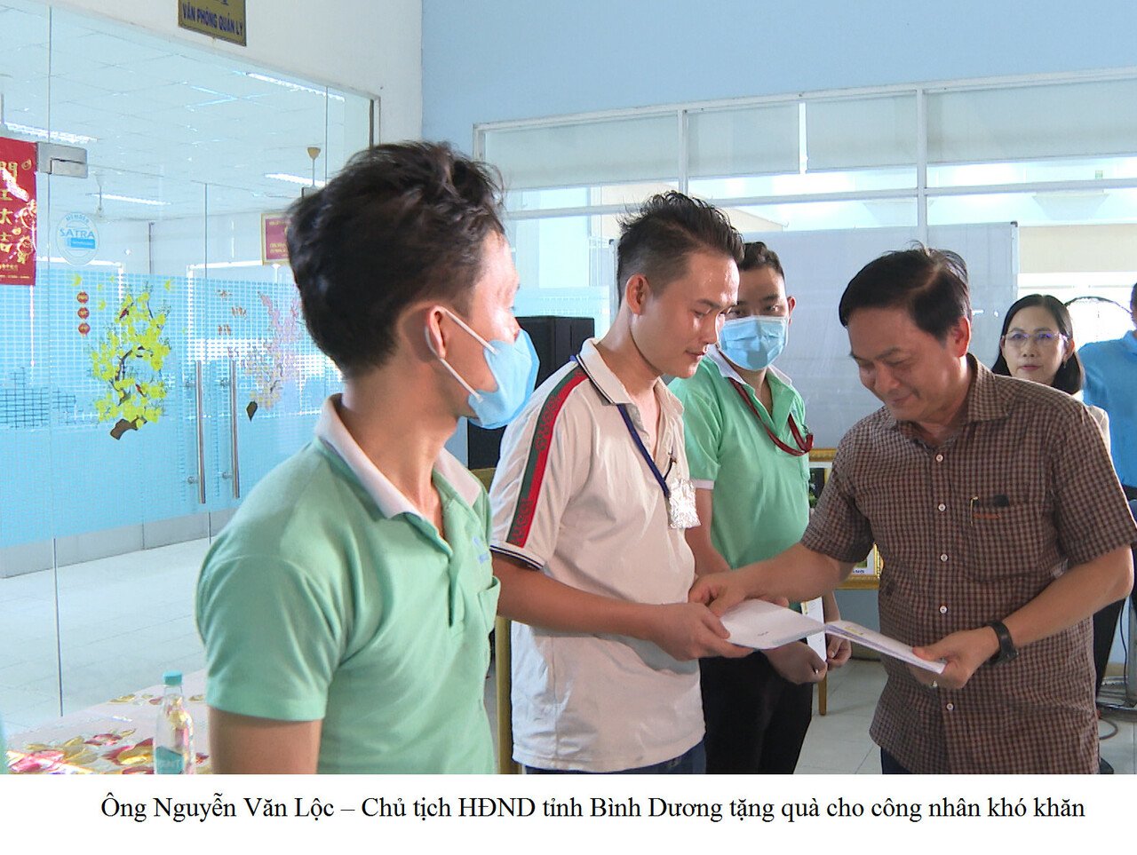 Lãnh đạo tỉnh Bình Dương và thành phố Bến Cát thăm, tặng quà cho đoàn viên, công nhân lao động khó khăn