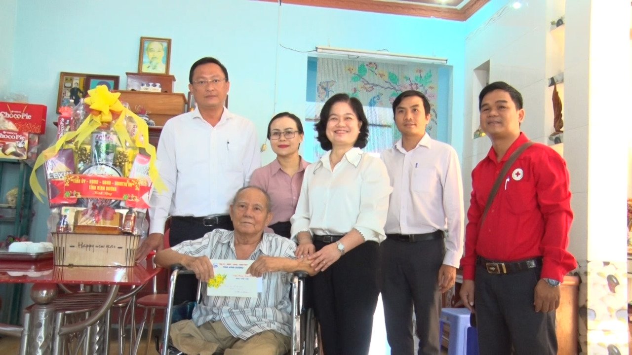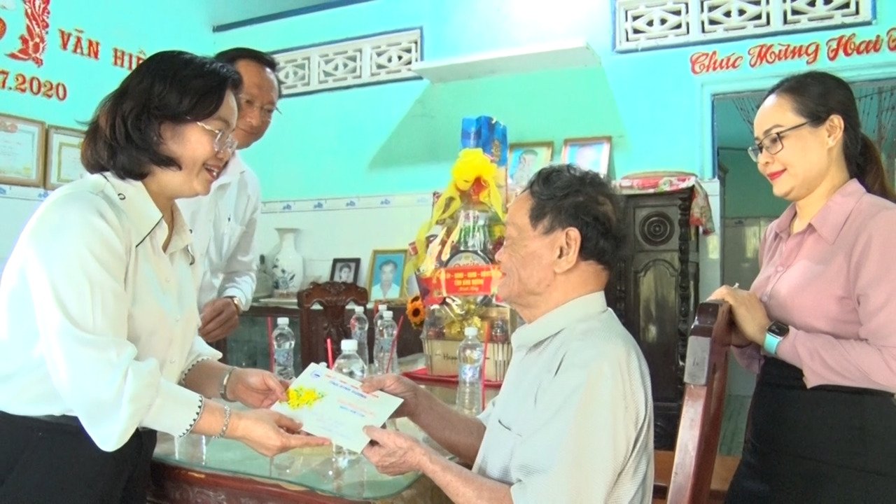 Dịp này, đoàn lãnh đạo tỉnh, thị xã đã trực tiếp đến thăm các gia đình chính sách, người có công cách mạng trên địa bàn phường Mỹ Phước.