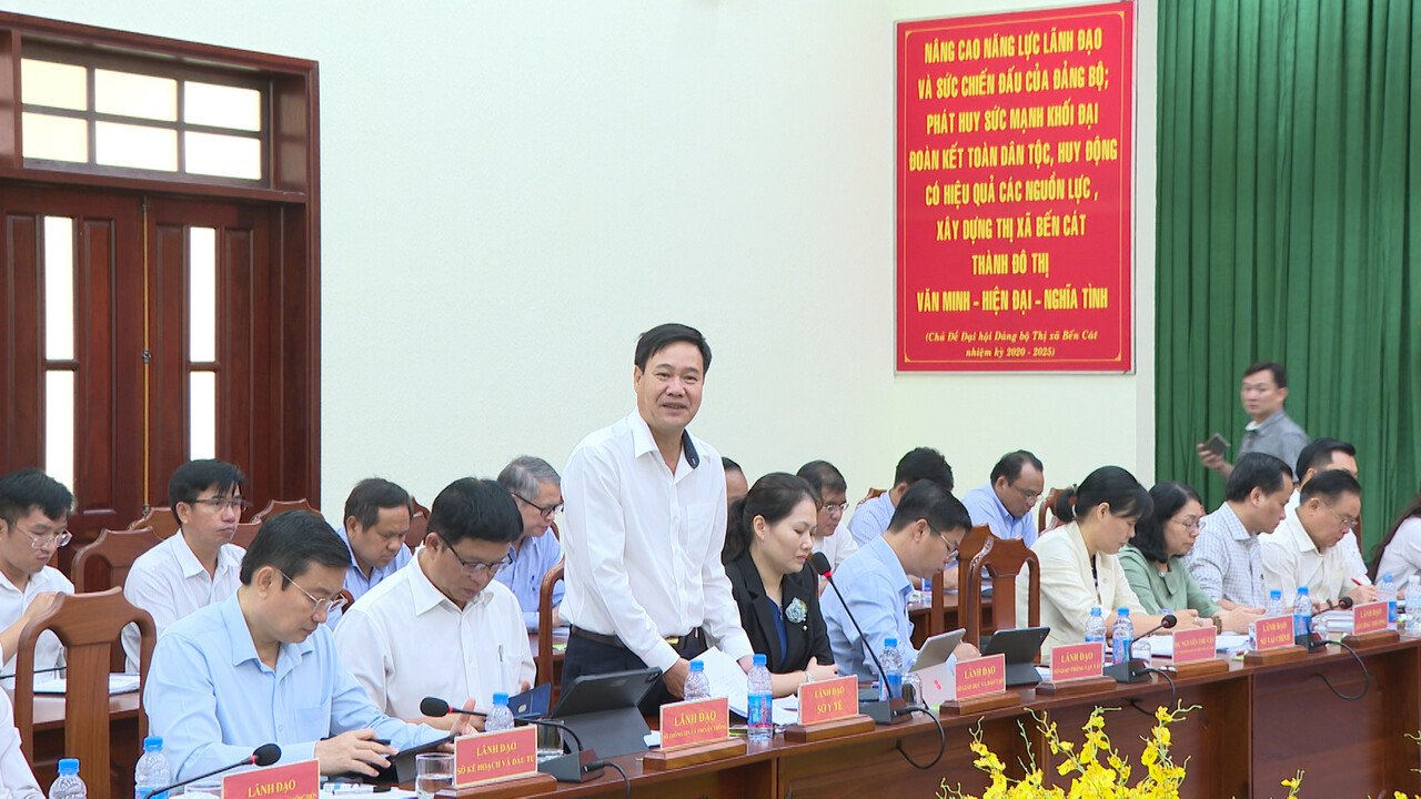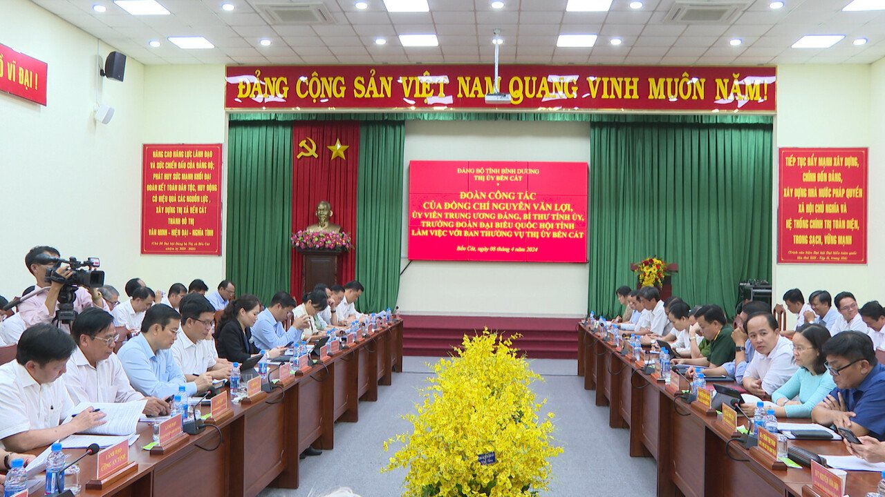 Dịp này, lãnh đạo thị xã Bến Cát báo cáo về công tác chuẩn bị tổ chức Lễ công bố Nghị quyết của Ủy ban Thường vụ Quốc hội về thành lập thành phố Bến Cát và đón nhận Huân chương lao động hạng Nhất gắn với kỷ niệm 10 năm thành lập thị xã Bến Cát.