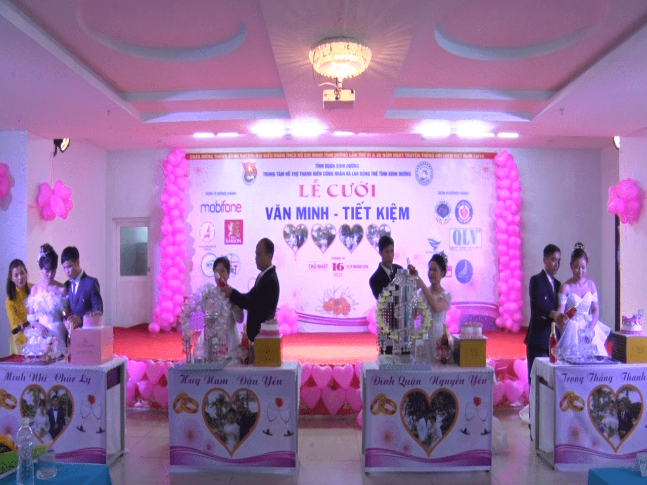 Lễ cưới được tổ chức giản dị nhưng đầy đủ những nghi thức truyền thống của lễ cưới Việt như: nghi thức rước dâu, nghi thức trao nhẫn cưới,… 04 cặp đôi được Ban tổ chức hỗ trợ miễn phí các dịch vụ như: ảnh cưới, quay phim, nhẫn cưới, xe cô dâu, trang điểm, trang phục cưới, hội trường tổ chức lễ cưới, 01 bàn tiệc,… Ngoài ra, các cặp đôi còn được các mạnh thường quân, nhà tài trợ trao tặng nhiều phần quà có giá trị…