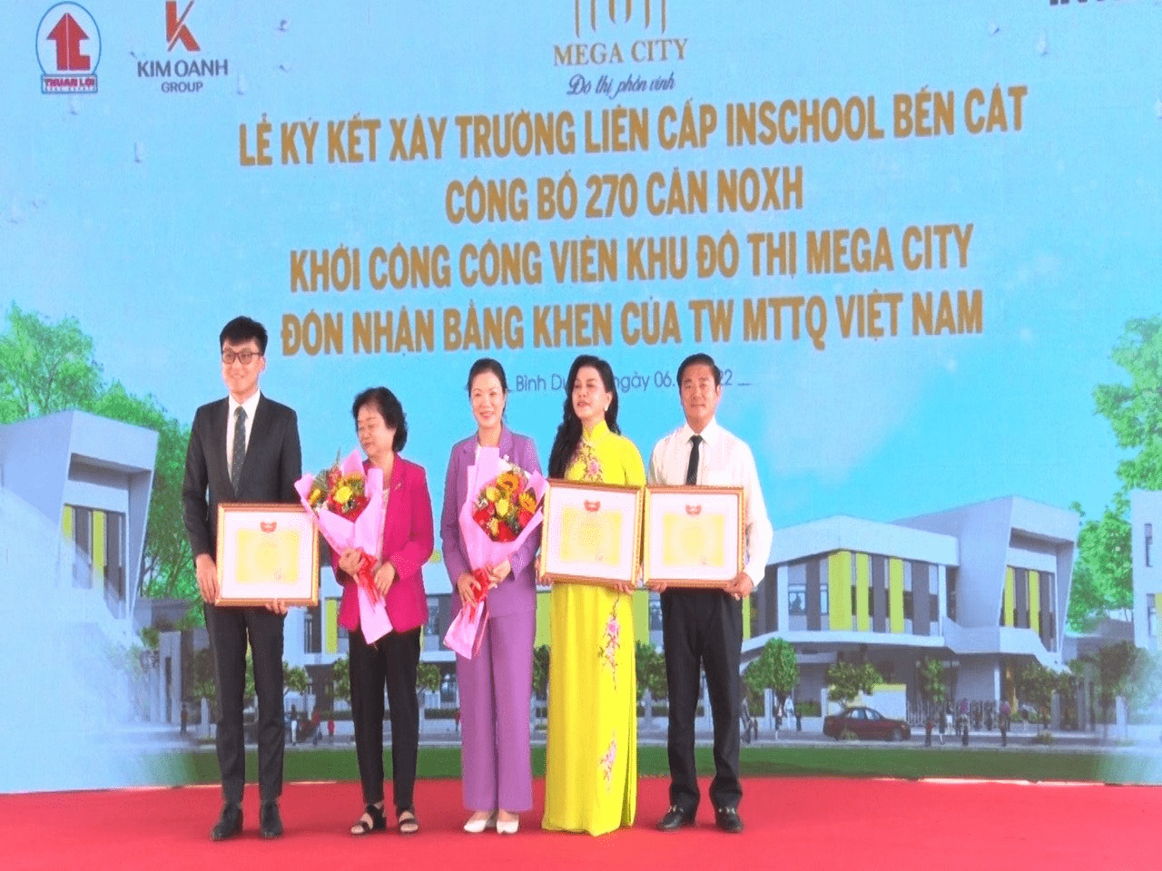 Tại buổi lễ, Kim Oanh Group đã ký kết hợp tác cùng Công ty Cổ phần Liên kết Quốc tế (Interlink Education) xây dựng hệ thống trường học liên cấp Inschool. Công trình có quy mô hơn 1,6 ha, được đầu tư đồng bộ với các trang thiết bị hiện đại và chương trình học tiên tiến của nước ngoài cho khoảng 2.000 học sinh từ mầm non đến lớp 12. Dự kiến, tháng 4/2023 sẽ chính thức khởi động chương trình tuyển sinh năm học đầu tiên với số lượng ban đầu khoảng 600 học sinh. Bên cạnh đó, Kim Oanh Group đã khởi công xây dựng tuyến công viên dài 1,2km ven sông Thị Tính với diện tích khoảng 4,88 ha. Đây là công viên sinh thái đa chức năng, đáp ứng nhu cầu vui chơi, giải trí hàng đầu cho cư dân khu đô thị Mega City cũng như người dân quanh khu vực. Đồng thời, Kim Oanh Group công bố đầu tư 270 căn nhà ở xã hội và chính thức khai trương nhà mẫu dự án Mega City.
