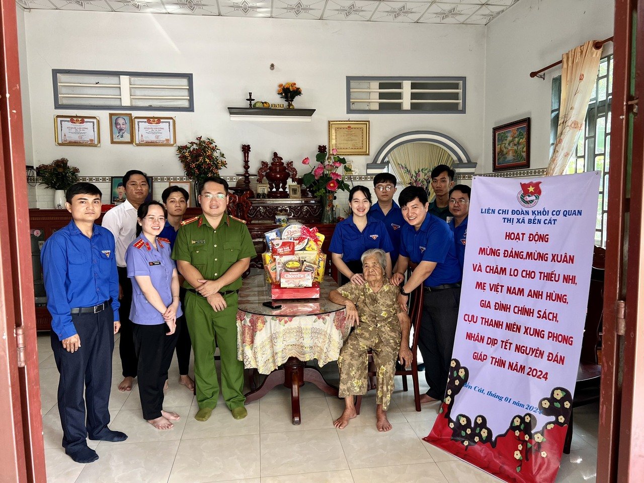 Tại mỗi nơi đến, đoàn viên khối cơ quan thị xã đã ân cần thăm hỏi sức khỏe và động viên tinh thần các mẹ sống vui sống khỏe, bày tỏ lòng biết ơn sâu sắc đối với những hy sinh, mất mát của các mẹ và những gia đình có công với cách mạng. Tuổi trẻ thị xã Bến Cát mong muốn các mẹ và các gia đình luôn sống gương mẫu để động viên con cháu thi đua phát triển sản xuất, xây dựng Bến Cát ngày càng giàu đẹp, văn minh.