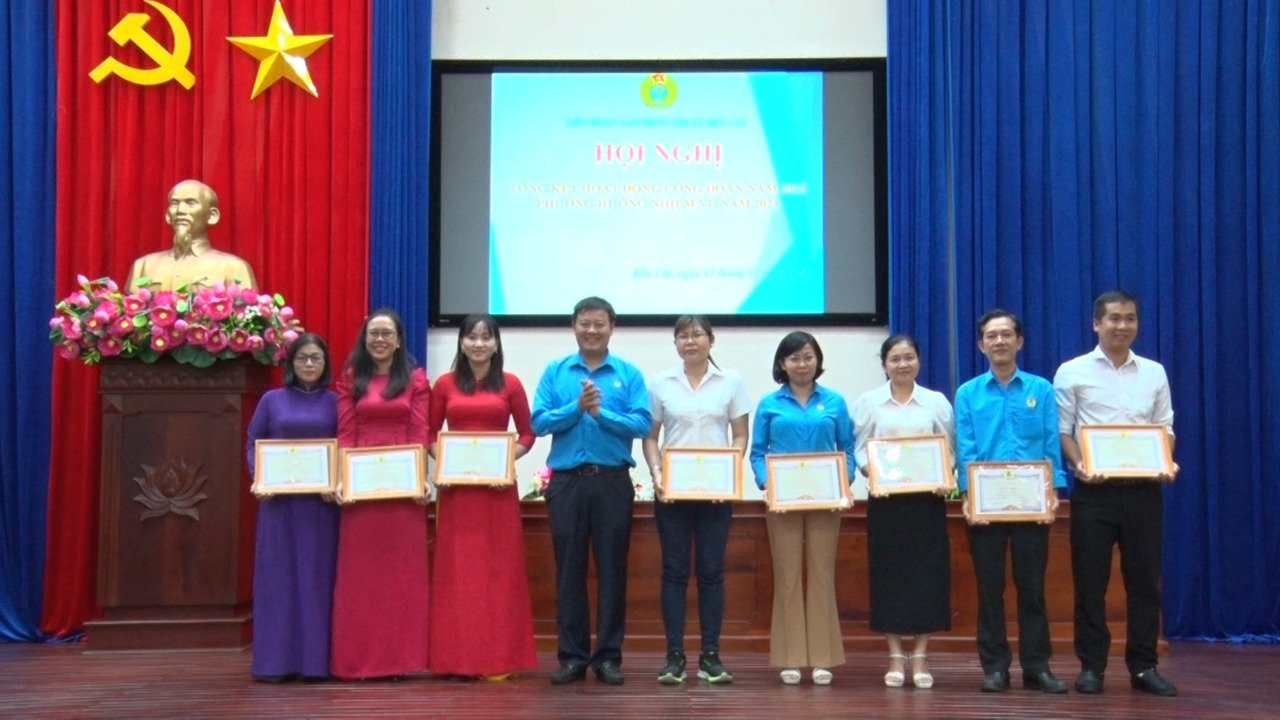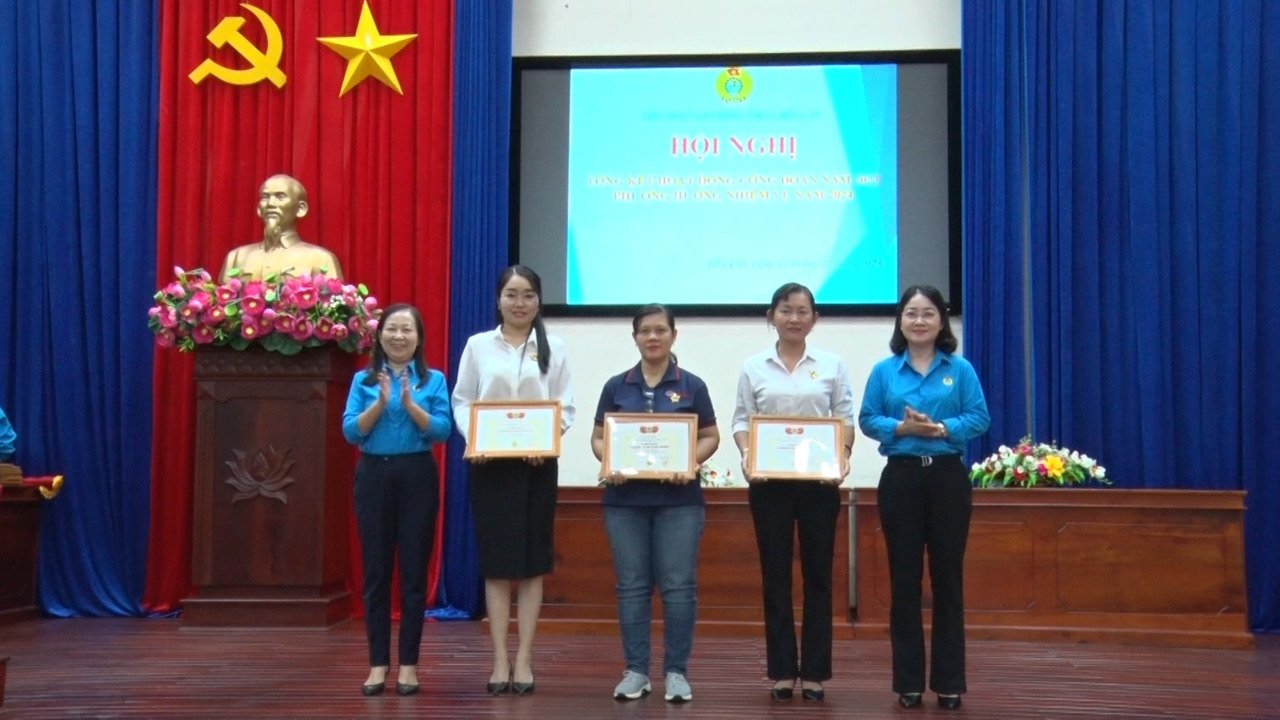 Dịp này, Tổng LĐLĐ Việt Nam tặng bằng khen, kỷ niệm chương “Vì sự nghiệp Công đoàn”, LĐLĐ tỉnh, thị xã, tặng cờ thi đua, bằng khen, giấy khen cho các tập thể, cá nhân hoàn thành xuất sắc nhiệm vụ công đoàn năm 2023.