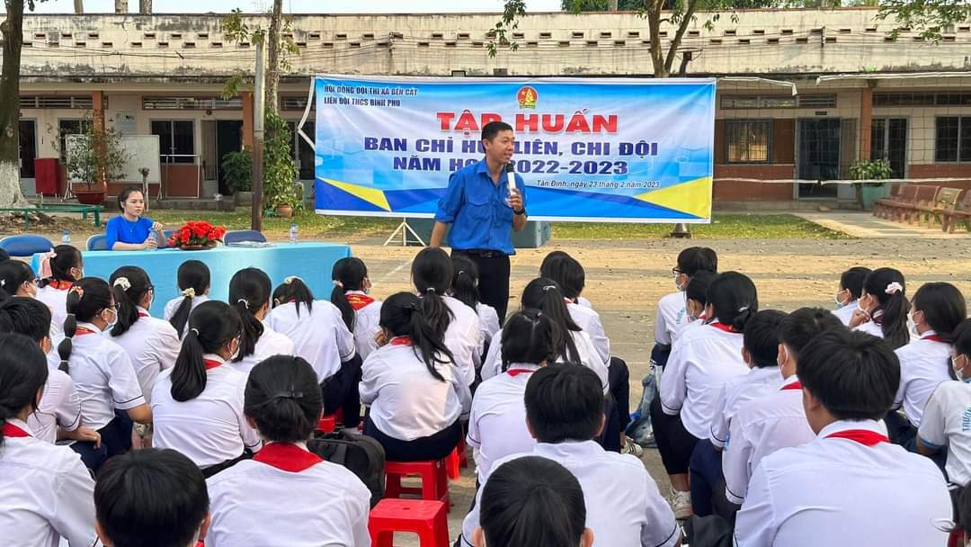 Thực hiện chương trình công tác Đội năm học 2022-2023, Liên Đội trường THCS Bình Phú tổ chức tập huấn công tác Đội cho Ban chỉ huy Liên, Chi đội với hơn 100 đội viên tiêu biểu và giáo viên phụ trách chi đội.